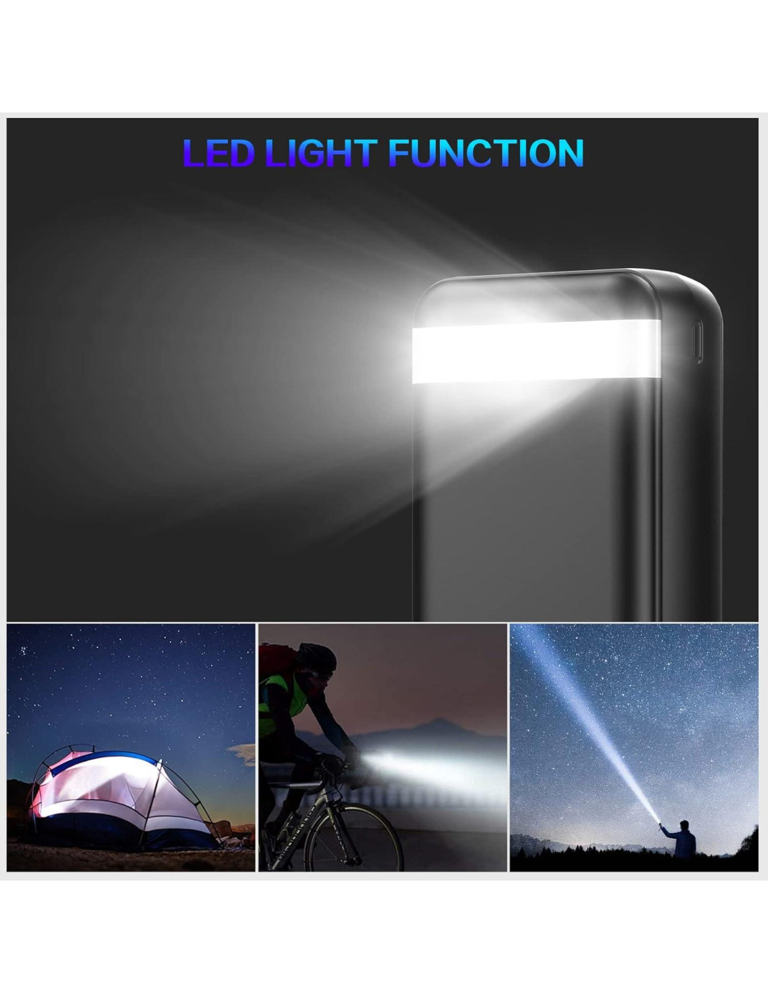 - Capacidad Colosal: El banco de energía de 50000mAh proporciona 10 cargas para iPhone11, 10 veces para Samsung S10. Dependiendo del tamaño de la batería, la mayoría de los smartphones obtendrán más de 9 cargas completas. Adecuado para acampar, hacer senderismo, vacaciones, viajes y más. (NOTA: ¡Los CARGADORES PORTÁTILES DE 50000mAh NO ESTÁN PERMITIDOS EN EL AVIÓN!)