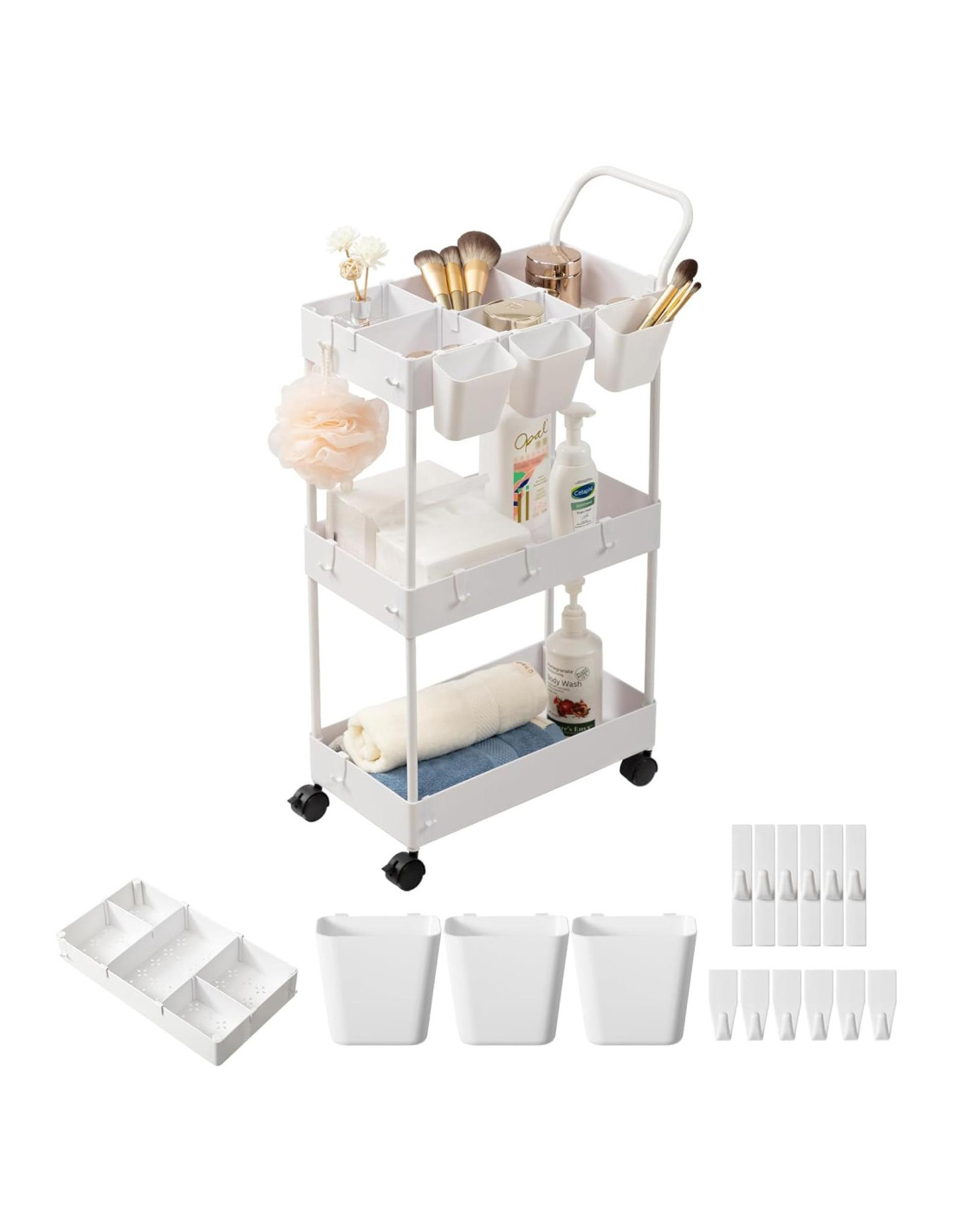 - Carro de Utilidad Versátil: Este carro estrecho podría ser un carro de baño y funciona bien como un carro de lavandería, un organizador de carrito para bebés, un carro de bocadillos para niños, un carro de maquillaje y un estante de especias. También puede colocarse junto al refrigerador en espacios estrechos para proporcionar almacenamiento