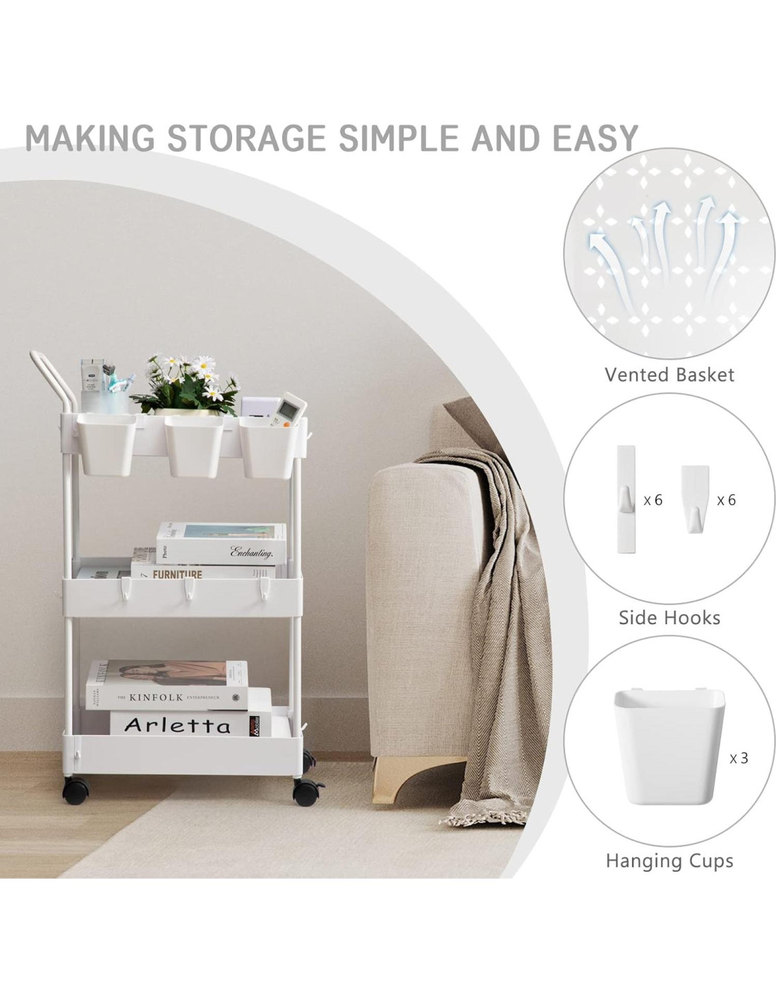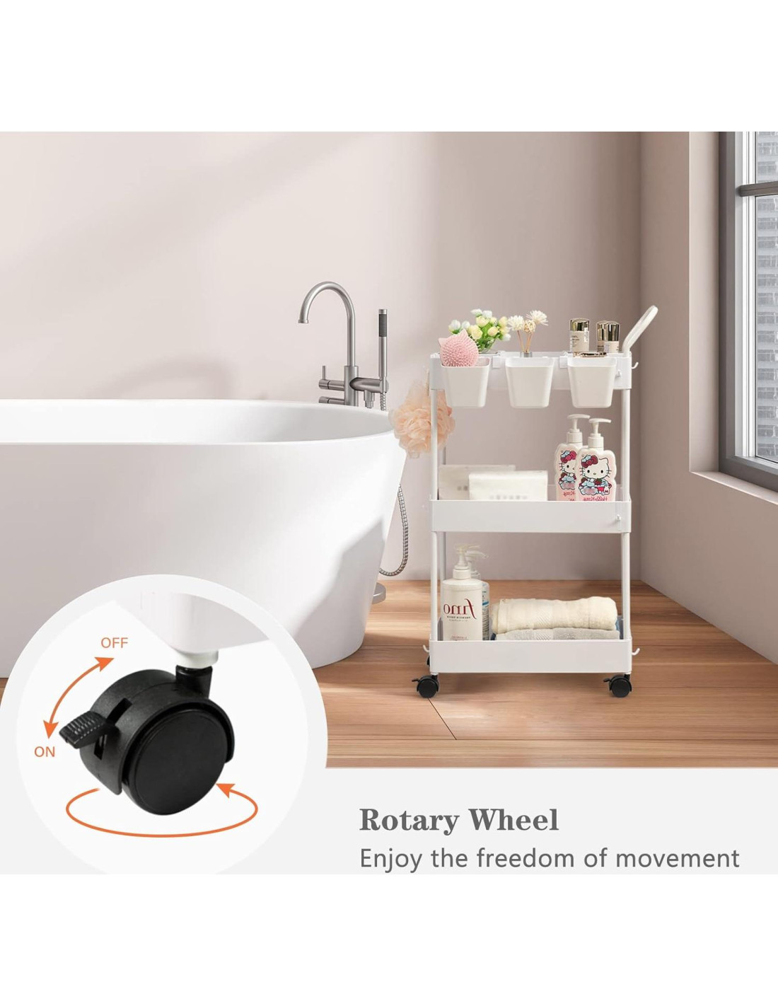 Carro de Almacenamiento danpinera con Ruedas, Carro Rodante de 3 Niveles, Carro de Lavandería Delgado con Ruedas
