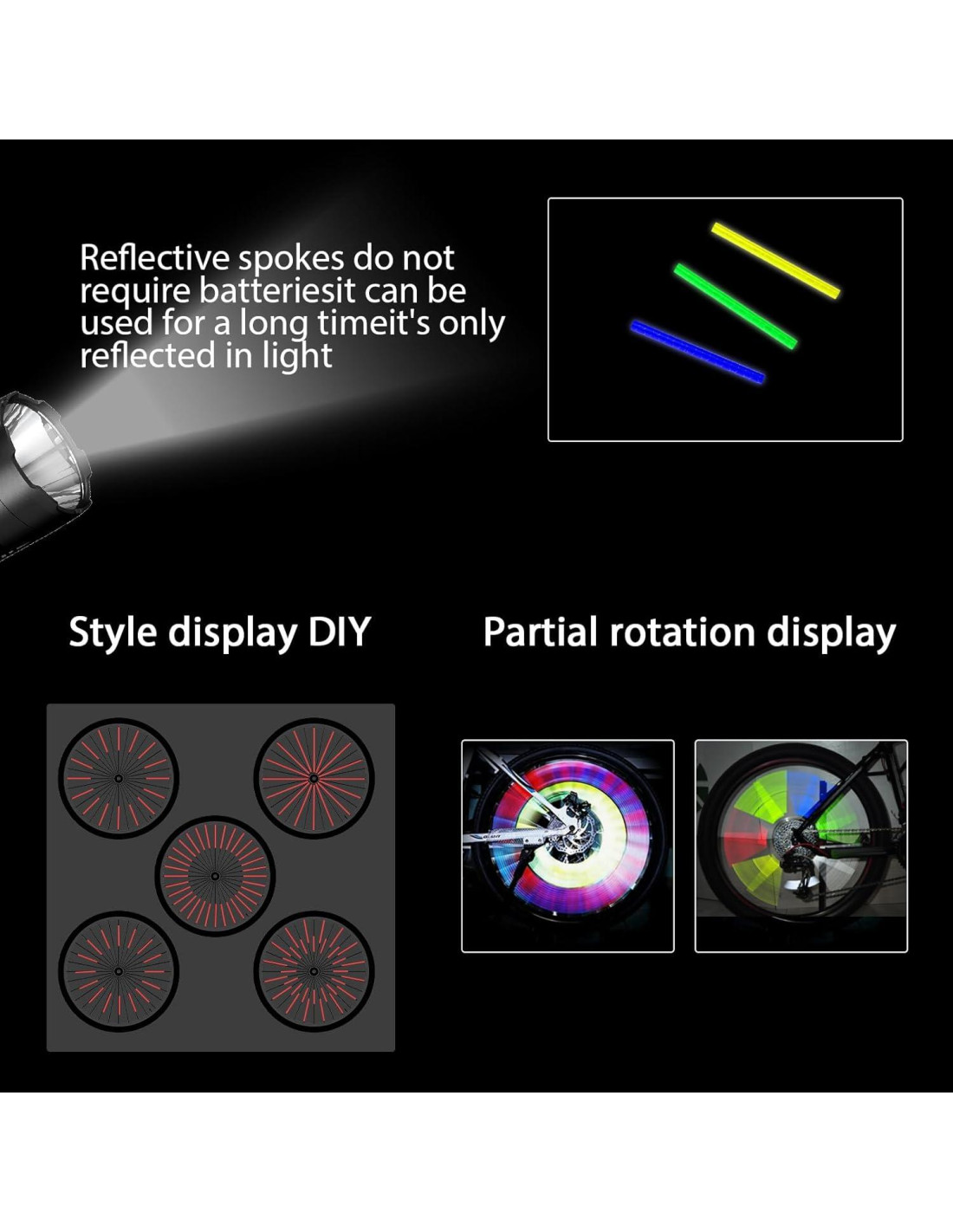 - [Fácil de Instalar] Estas pieles reflectantes para radios están diseñadas con ranuras huecas y se pueden clipar fácilmente en los radios de la bicicleta. El ajuste ceñido y el diseño elástico aseguran que estén firmemente fijados sin el uso de adhesivos.