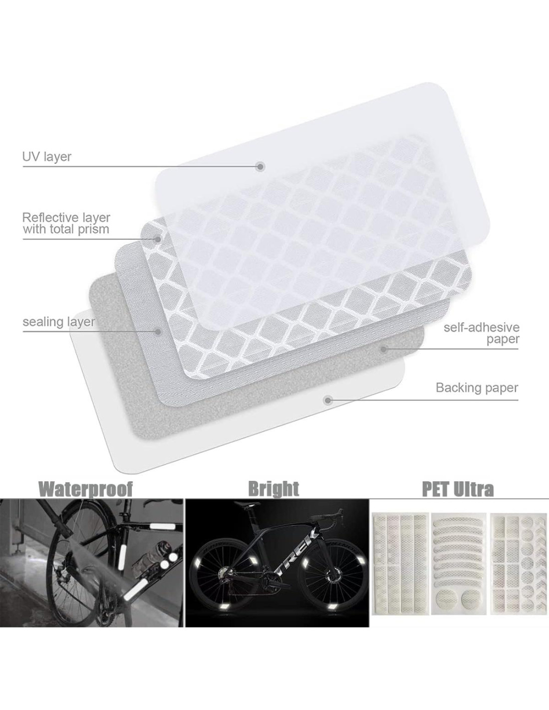 - Haz que tu paseo nocturno sea más seguro: Estas calcomanías reflectantes están diseñadas específicamente para adoptar fuertes propiedades reflectantes y un amplio ángulo de reflexión para proporcionar la máxima protección al montar en la oscuridad o en condiciones de poca luz.