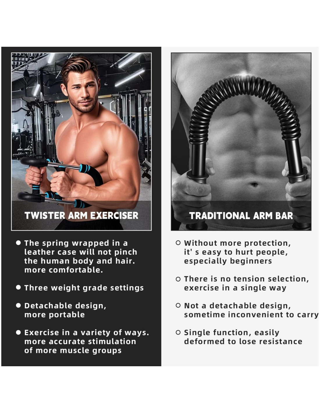 Resistencia ajustable para entrenamientos personalizados: con resistencia de resorte ajustable de 60-100lb (27.2-45.4kg), este entrenador de brazos Twister se adapta tanto a principiantes como a usuarios avanzados. Personaliza fácilmente la intensidad del entrenamiento para desarrollar fuerza, resistencia y definición muscular a tu propio ritmo.