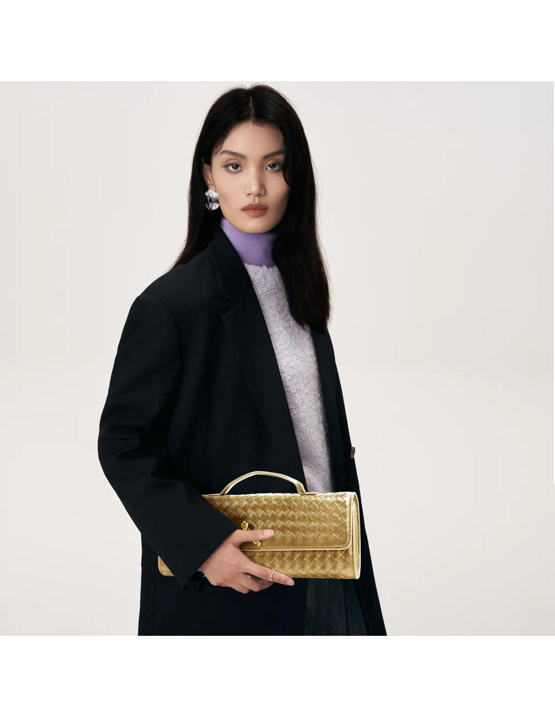- [Diseño Elegante] Elevado por una textura tejida y asegurado con un distintivo cierre de hebilla en tono dorado, combinando moda con funcionalidad.