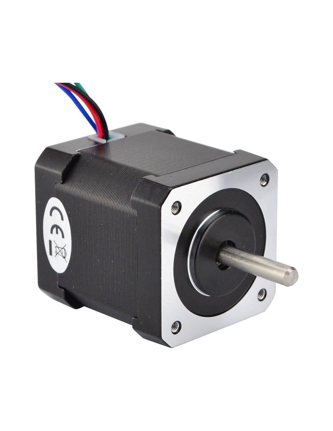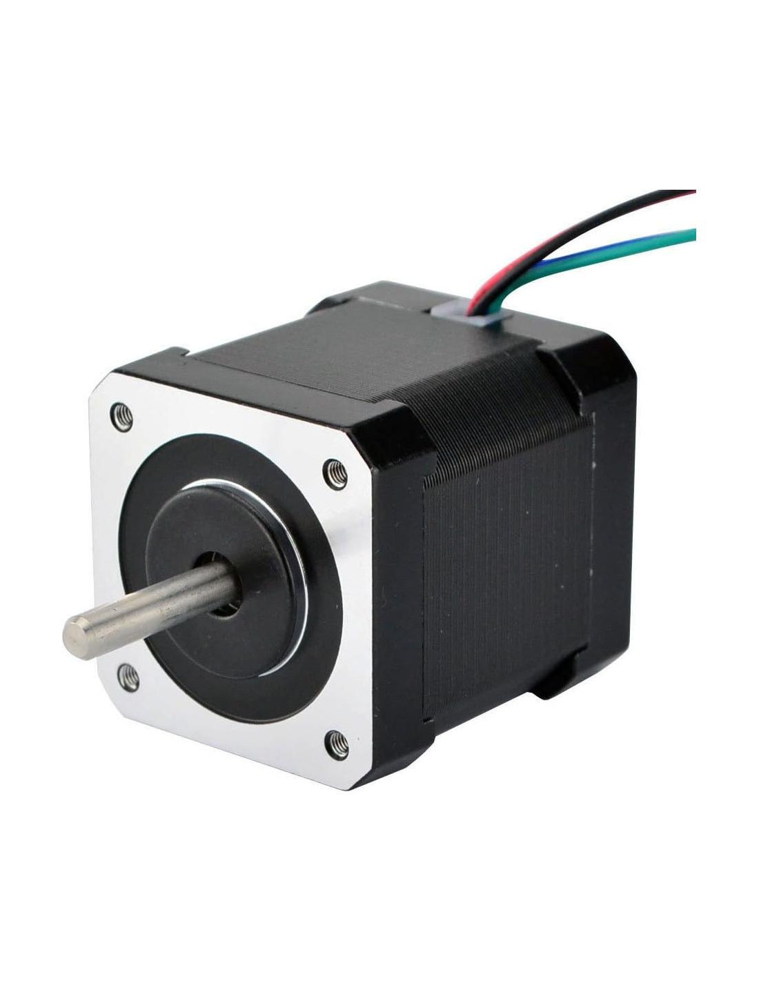 Este es el motor paso a paso Nema 17 más popular en el mercado de impresoras 3D, con un ángulo de paso de 1.8 (200 pasos/revolución). Cada fase consume 1.68A, lo que permite un par de retención de 44Ncm (62.3oz.in). Es una muy buena opción para impresoras 3D, un eje trasero está hecho para encoder o iguales. Especificación eléctrica * Número de parte del fabricante: 17HS19-1684D * Tipo de motor: Paso a paso bipolar * Ángulo de paso: 1.8 * Par de retención: 44Ncm (62.3oz.in) * Corriente nominal/fase: 1.68A * Resistencia de fase: 1.65ohms * Voltaje recomendado: 12-24V * Inductancia: 2.8mH+/-20%(1KHz) Especificación física * Tamaño del marco: 42 x 42mm * Longitud del cuerpo: 48mm * Diámetro del eje: 5mm * Longitud del eje frontal: 24mm * Longitud del eje trasero: 13mm * Número de cables: 4 * Longitud del cable: 500mm * Peso: 390g Conexión: Negro(A+), Verde(A-), Rojo(B+), Azul(B-) Advertencia: Asegúrese de que el motor esté conectado a un controlador de corriente constante o de chopper antes de probar el motor. Conectar el motor directamente a una fuente de alimentación destruirá el motor.