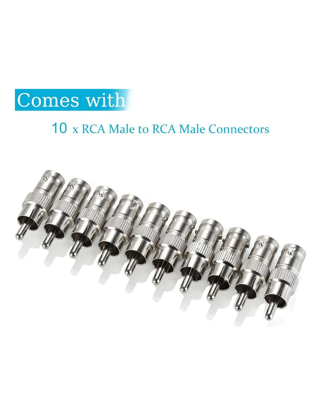 - AMPLIA COMPATIBILIDAD: Totalmente compatible con aplicaciones de 75 Ohmios y dispositivos de video que utilizan pantallas adaptables de RCA a BNC. Ampliamente utilizado en instalaciones de cable coaxial CCTV, funciona bien en monitores de salas de juntas de oficinas comerciales, micrófonos y más.