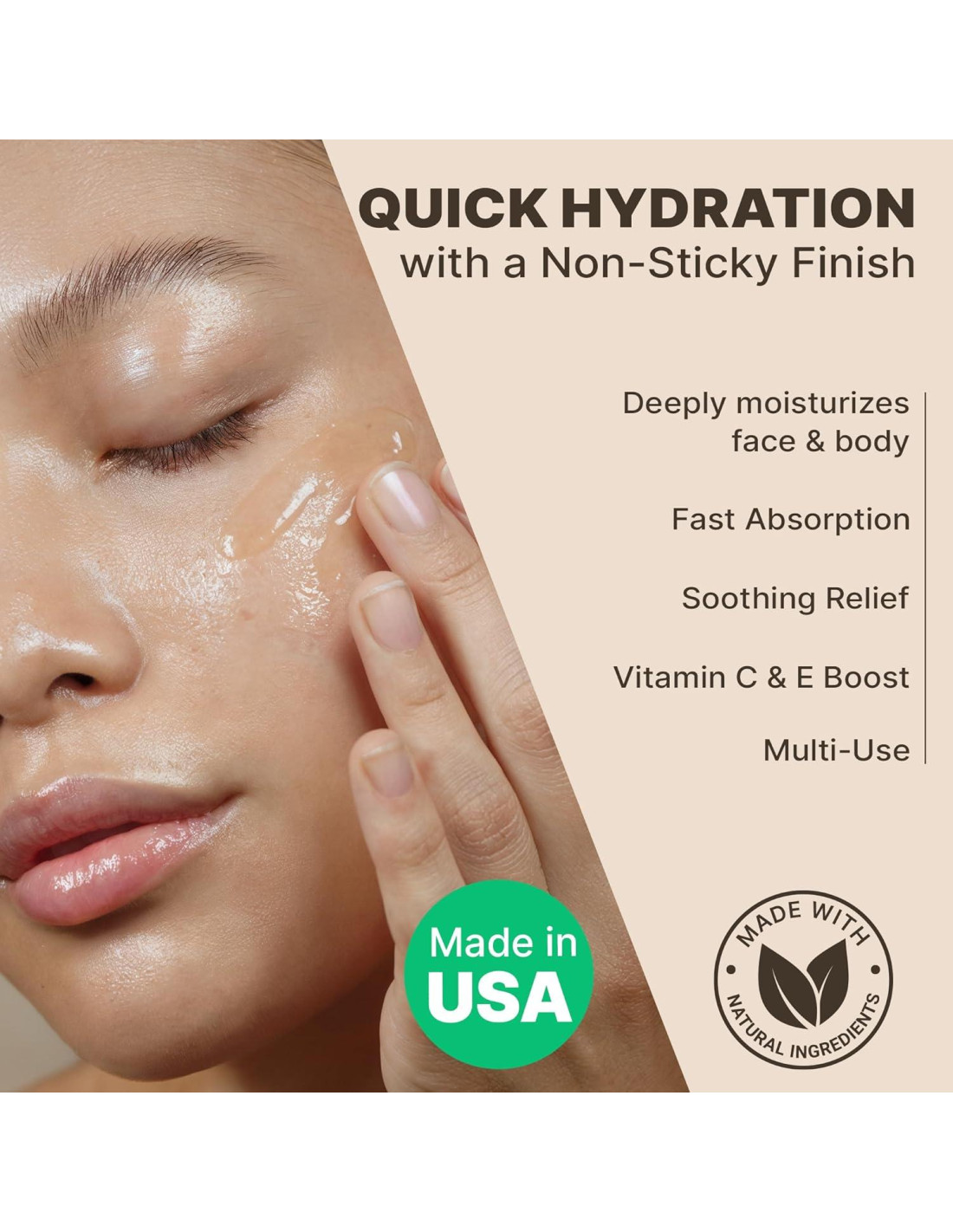 - HECHO EN EE. UU. CON ALOE ORGÁNICO: Nuestro gel de aloe vera para cara y cuerpo está elaborado con los mejores ingredientes naturales y orgánicos, asegurando una pureza y calidad excepcionales. Orgullosamente hecho en EE. UU., está libre de productos químicos agresivos, ofreciendo un cuidado suave y efectivo para todo tipo de piel.