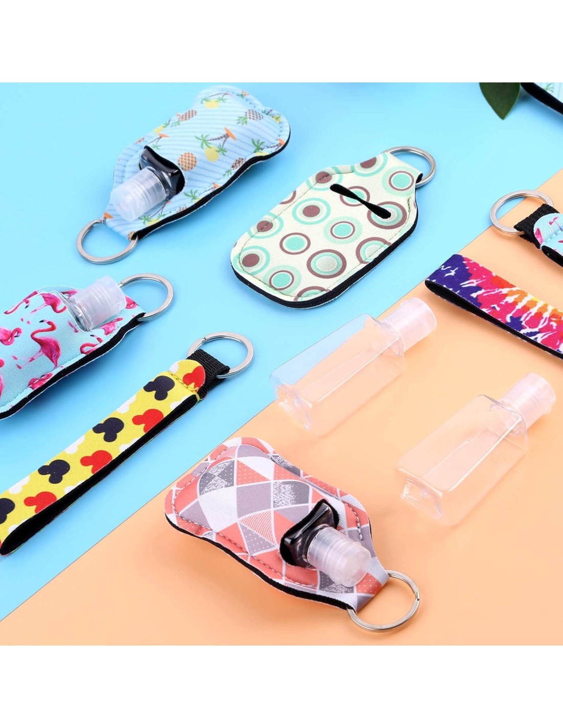 - Patrones Coloridos: Estos llaveros para soporte de jabón de manos tienen 20 patrones de flores, nuestro soporte de botella, llavero de muñeca están todos diseñados con patrones exquisitos y colores brillantes, lucen lindos y llamativos