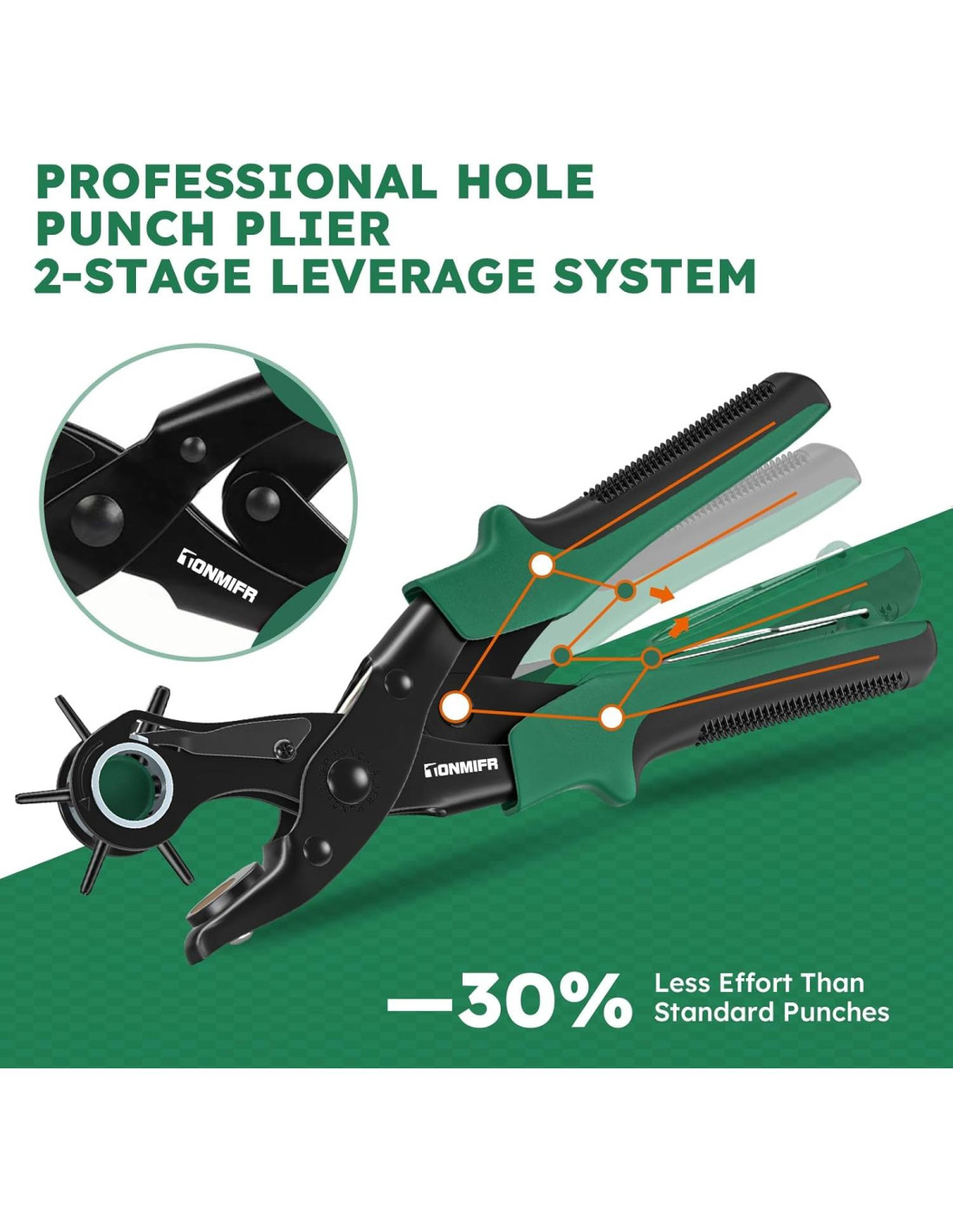 - Mecanismo de doble palanca con agarre antideslizante 30% menos esfuerzo gracias a la palanca optimizada - incluso probado en cuero completo de 4mm. El bloqueo ergonómico del mango de TPR previene ampollas durante el uso prolongado. Herramienta de cuero profesional para talleres y entusiastas del bricolaje.