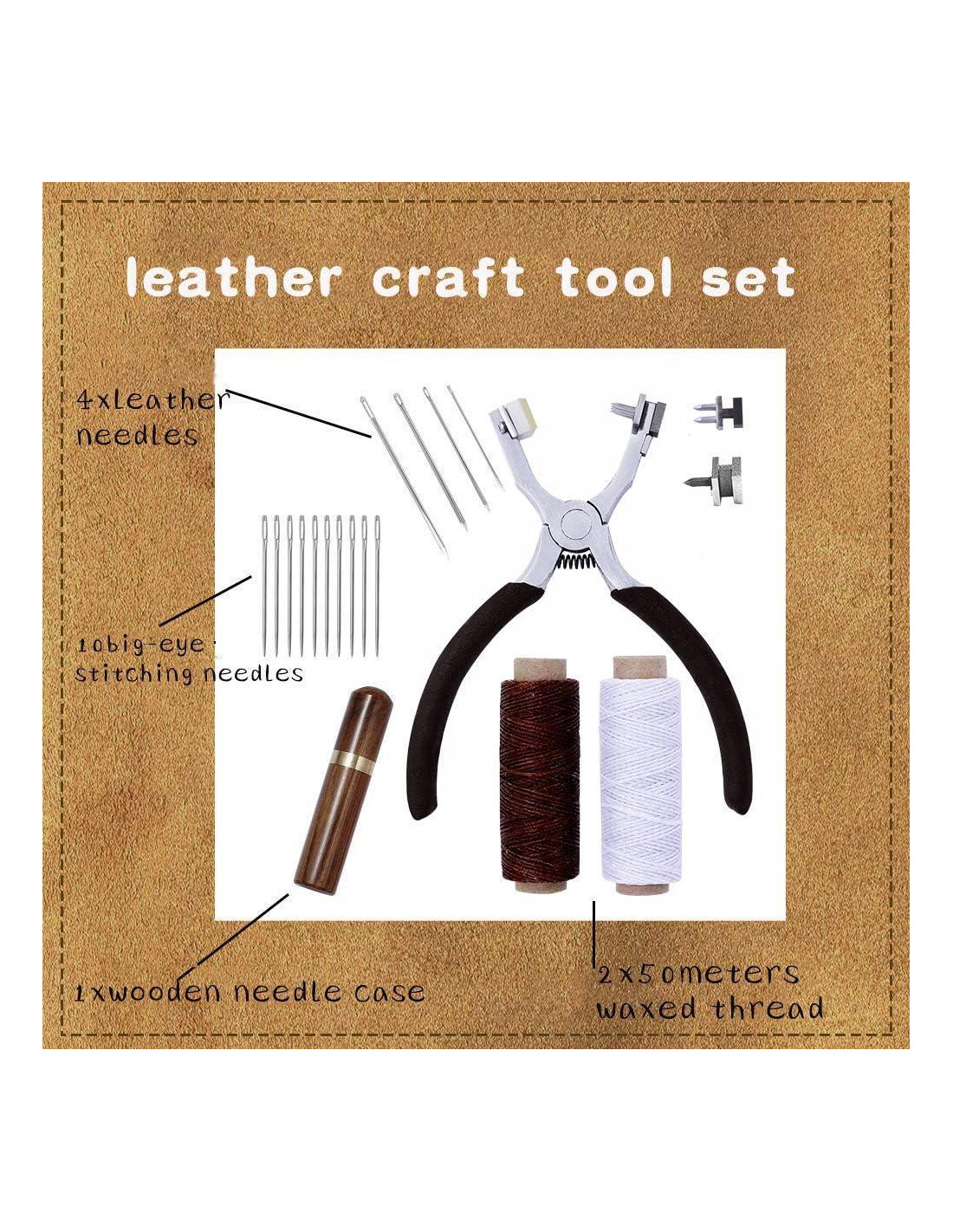 - Gran Juego de Herramientas de Artesanía en Cuero: Paquete que incluye 1 pieza de perforadora, 4 piezas de agujas de coser de cuero, 10 piezas de agujas de ojo grande, 1 pieza de caja de agujas, 2 piezas de hilo encerado. Grandes suministros para trabajar el cuero.