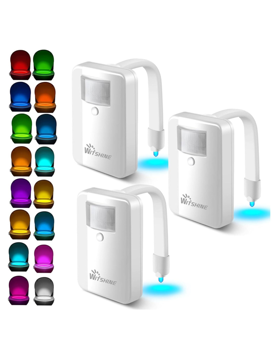 - Cambio de Color LED dentro del Tazón: Elige entre 16 colores individuales o rotación de colores, esta lámpara nocturna para inodoro hará que tu inodoro sea una hermosa decoración, esto hará que el entrenamiento para ir al baño sea divertido y risas para tus amigos.
