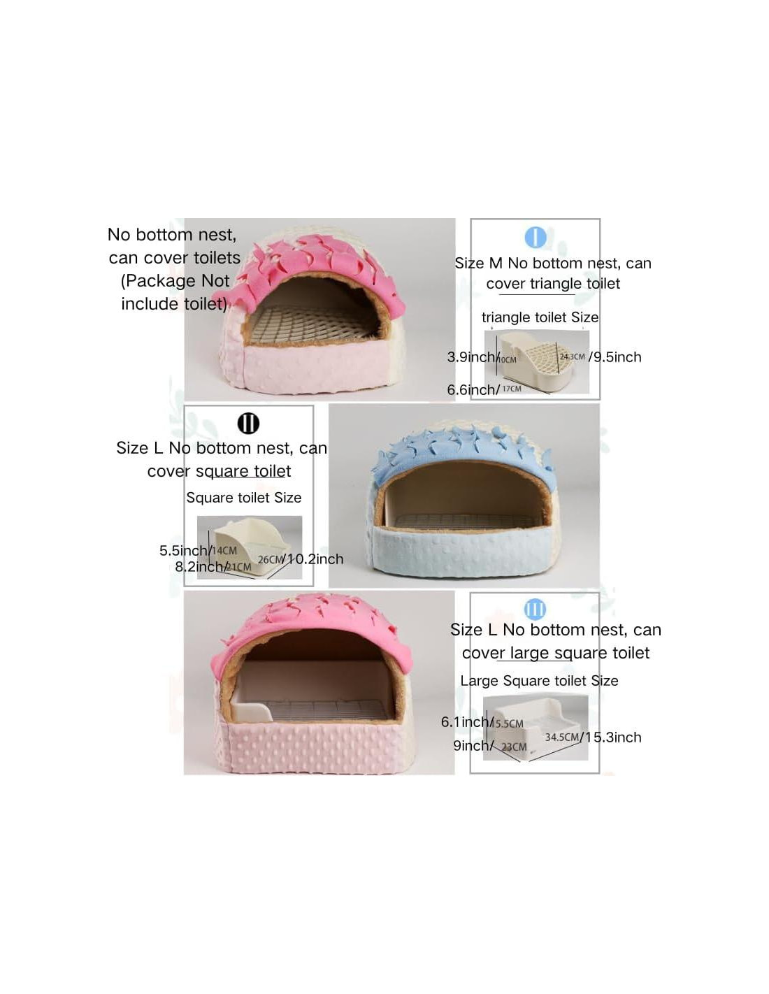 - Diseño Sin Fondo: Como los pequeños animales como los cobayas y los conejos no son fáciles de entrenar para orinar en el inodoro. Ellos orinarán en la cama, lo que hará que la cama esté sucia y maloliente. Además, puede enfermar a las mascotas. Nuestra cama está diseñada sin fondo, lo que puede mantener la cama limpia.