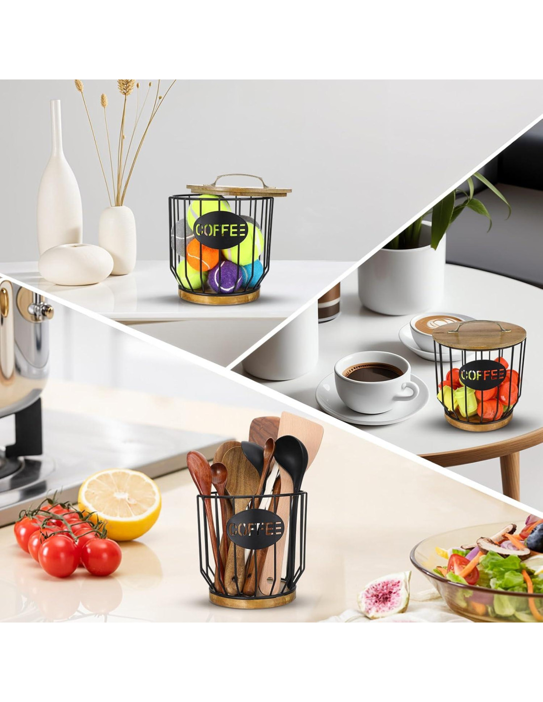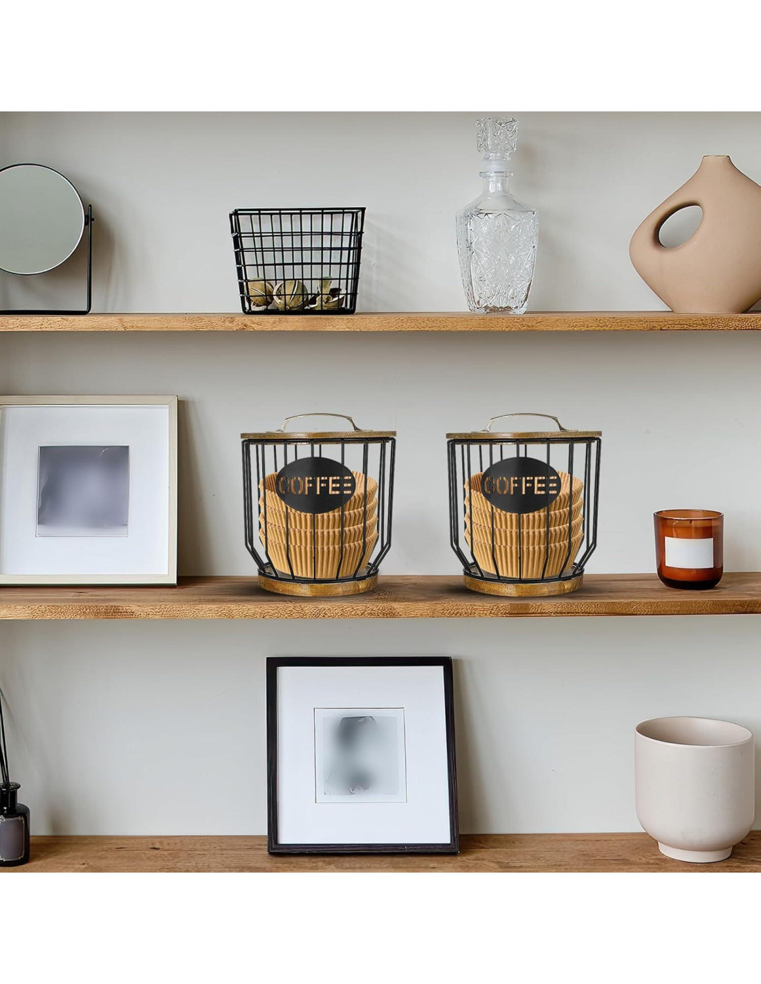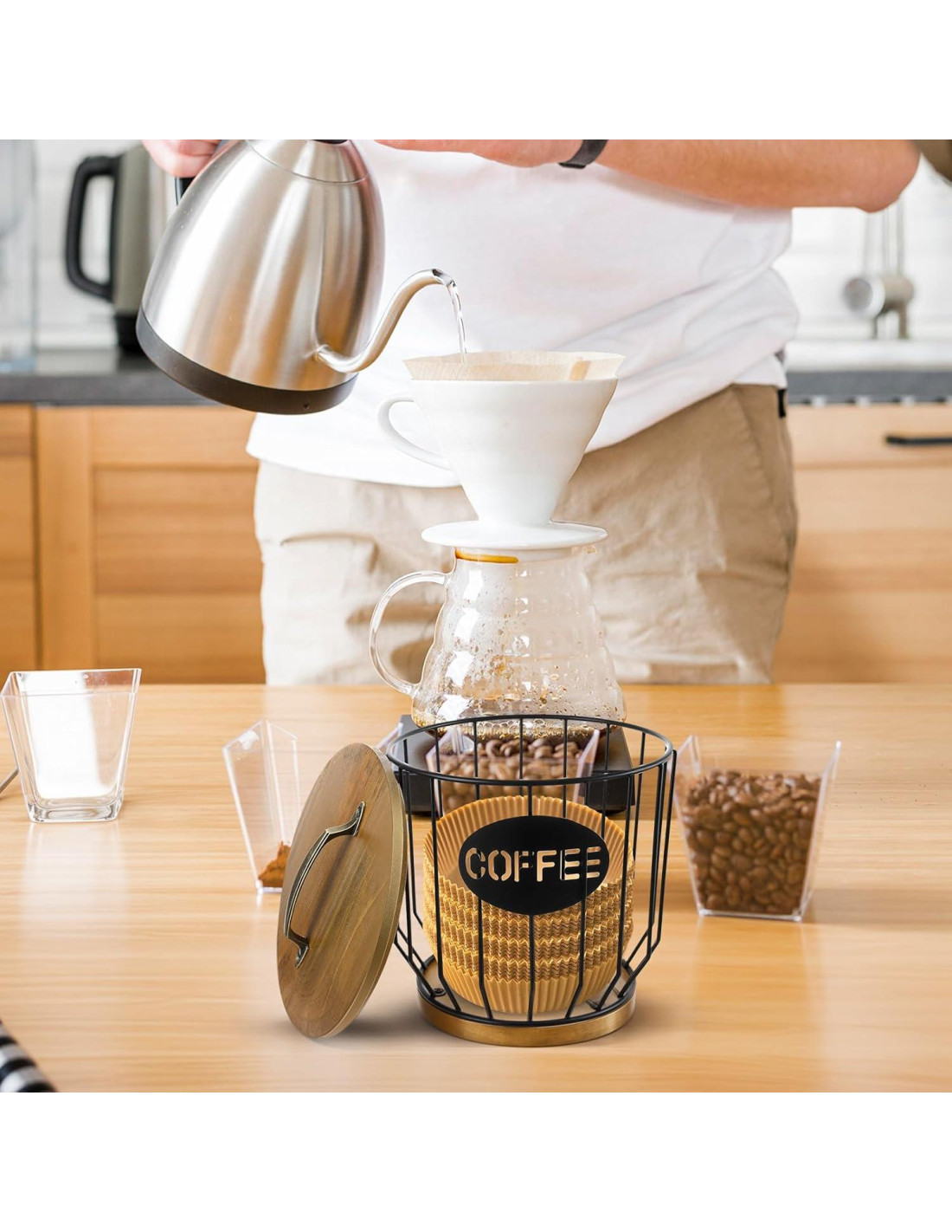- Almacenamiento Duradero para Filtros de Café: Hecho de madera y metal de alta calidad, esta cesta de almacenamiento para filtros de café está construida para durar. Su construcción robusta asegura un uso confiable, mientras que el acabado negro añade un toque de elegancia