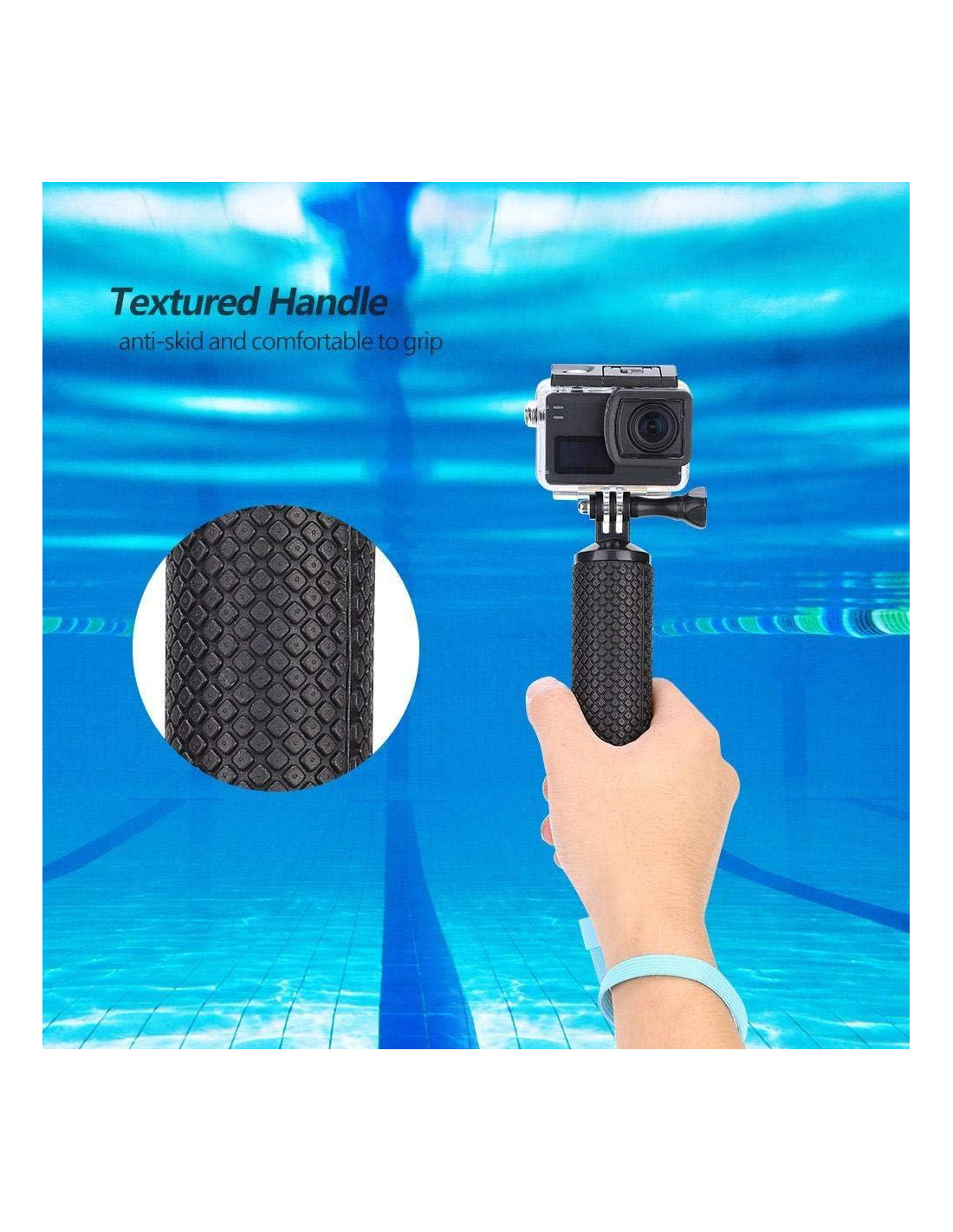 Especificación: Condición: Nuevo Material: Plástico + Silicona Color: Amarillo, Verde, Azul, Naranja (Opcional) Tamaño: Aproximadamente 8 * 3.8cm (3.1 * 1.5in) Peso: Aproximadamente 76g Empaque: 1 x Mango Flotante 1 x Correa para la Muñeca 1 x Tornillo * Cámara u otros accesorios no incluidos. Nota: Por favor, permita una ligera desviación de color causada por diferentes monitores. Agradecemos su comprensión.