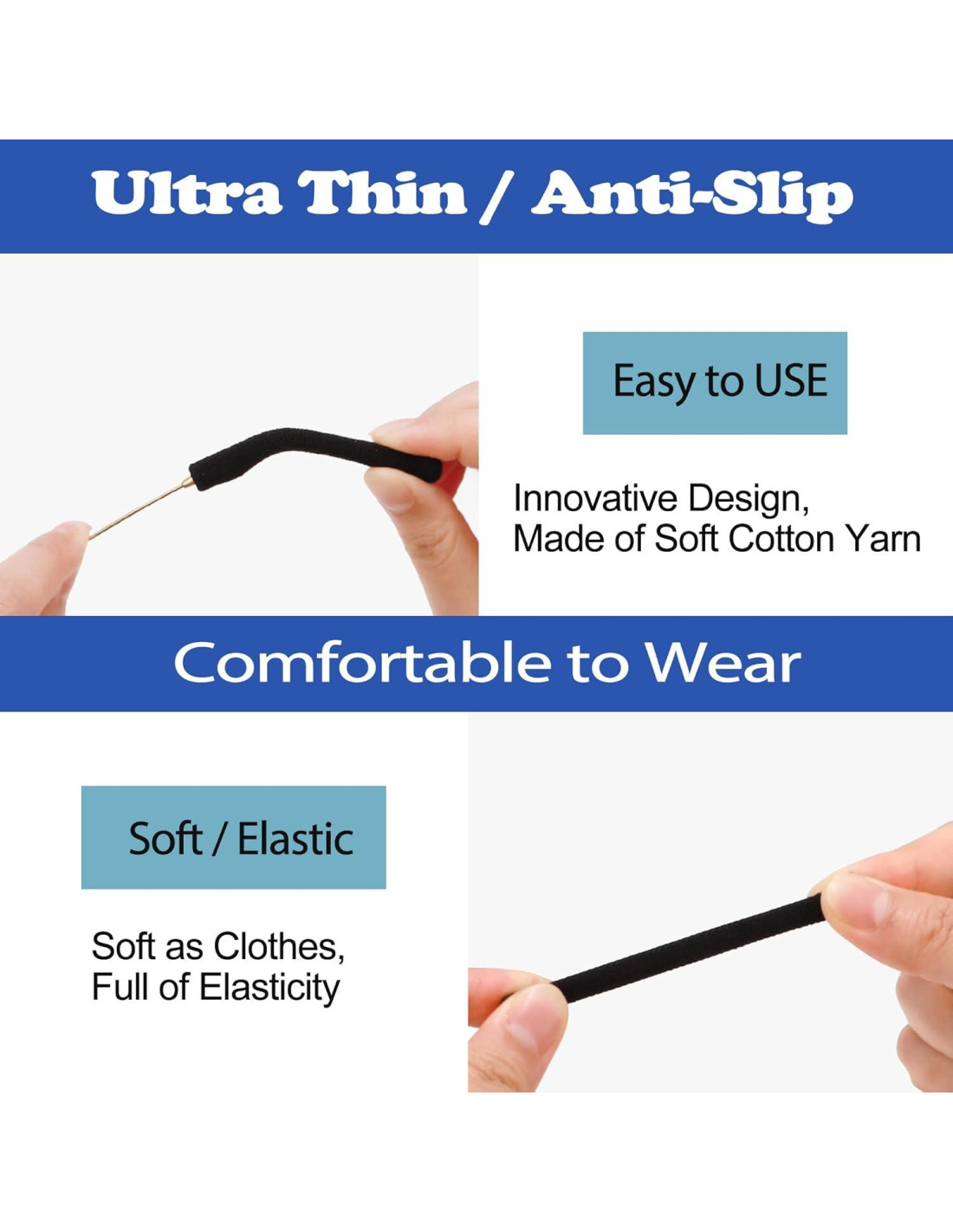 - Material Mejorado: Uso innovador de materiales de algodón para Fundas y Agarre de Patas de Gafas, hecho de hilos de algodón suave, ligero y de alta calidad, más amigable con la piel y más fácil de poner, mejor ajuste para las orejas. Última mejora, se adapta a casi cualquier par de gafas.