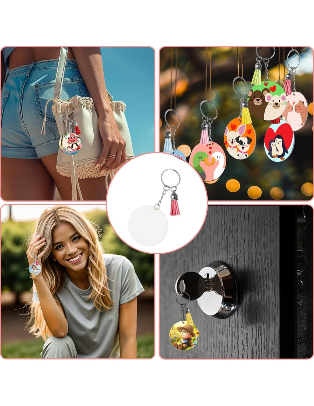 - Componentes incluidos: 30 x Plantillas de Llaveros de Acrílico, 30 x Anillos de Llaveros, 30 x Anillos de Salto, 30 x Borlas Plateadas