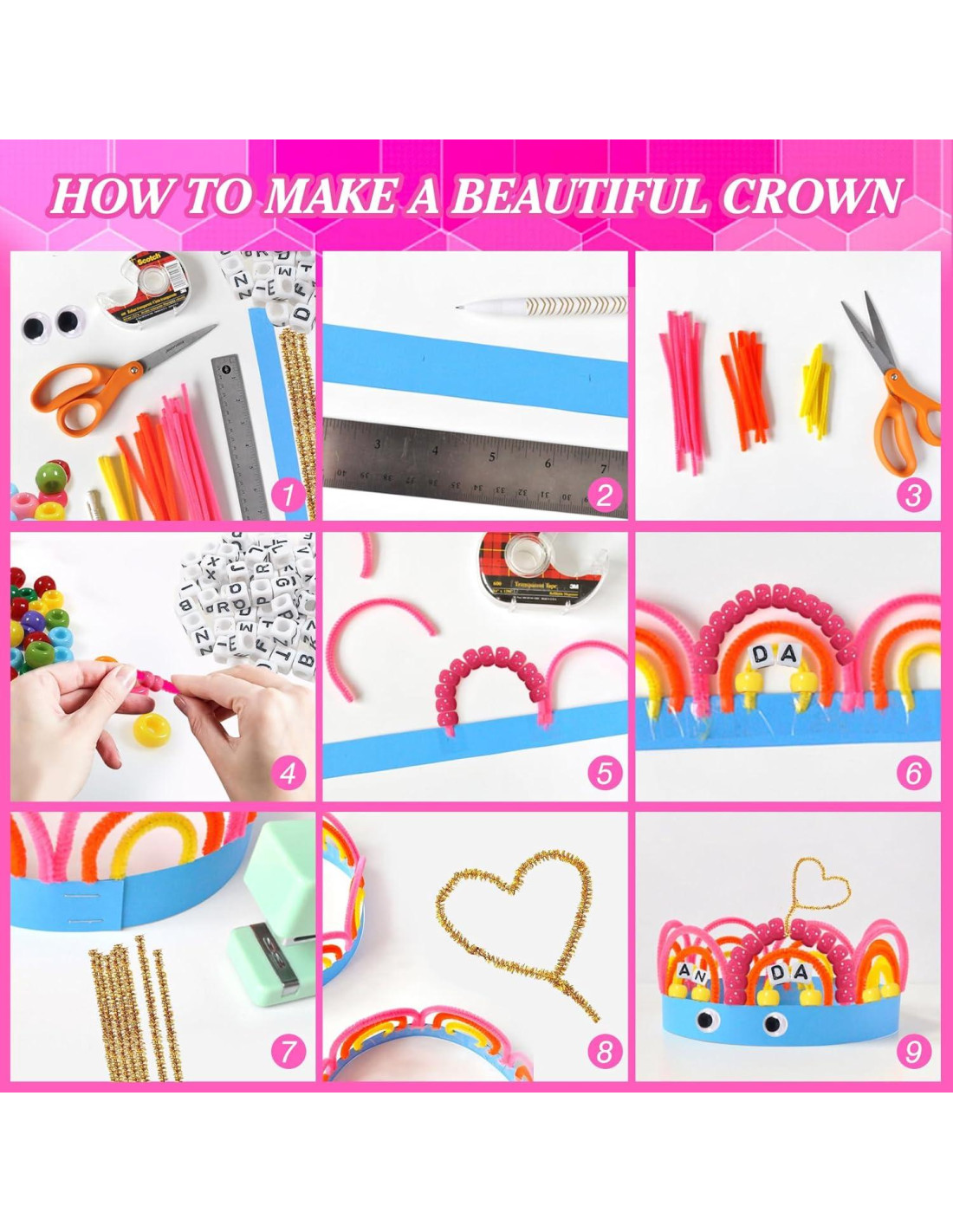 - Paquete Incluye: 1360pcs suministros de manualidades limpiapipas incluyen 200pcs limpiapipas coloridos, 300pcs ojos móviles, 300pcs pompones, 260pcs cuentas de letras y 300pcs cuentas de pony. Cantidad suficiente para satisfacer tus diversas necesidades de creaciones de manualidades DIY