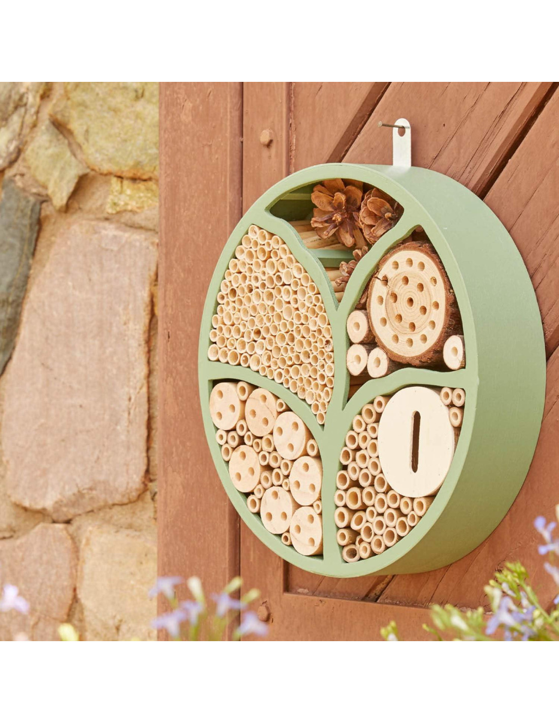 - Ayuda a las plantas del jardín a aumentar la productividad en tu jardín. Únicamente tallada e incluye un anillo de metal fijado de forma segura para colgar. Elegir una casa de insectos multi hábitat de madera segura hará que tu jardín sea más popular.