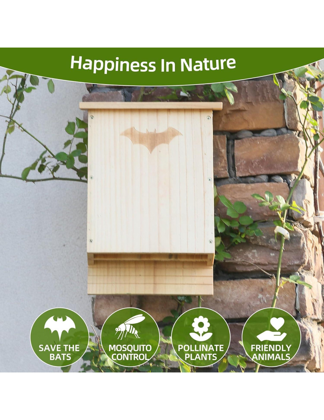 - Apoya a los Murciélagos Locales y Protege Tu Jardín: Los murciélagos juegan un papel importante en el medio ambiente; ofrecerles un hogar cómodo ayuda a proteger tu jardín y proporciona un refugio natural para que los murciélagos se establezcan. Esto reduce el riesgo de que los murciélagos aniden en áticos o edificios.