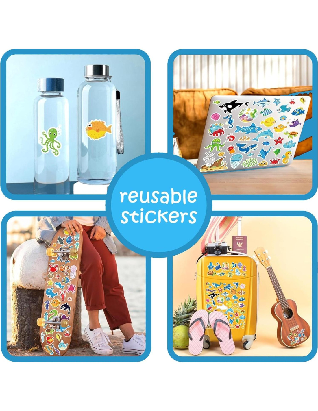 - Libro de Pegatinas del Océano Incluido - Viene con un libro de actividades de pegatinas reutilizables que presenta animales del océano. Los niños pueden crear escenas submarinas en el libro, la nevera, las ventanas y más.