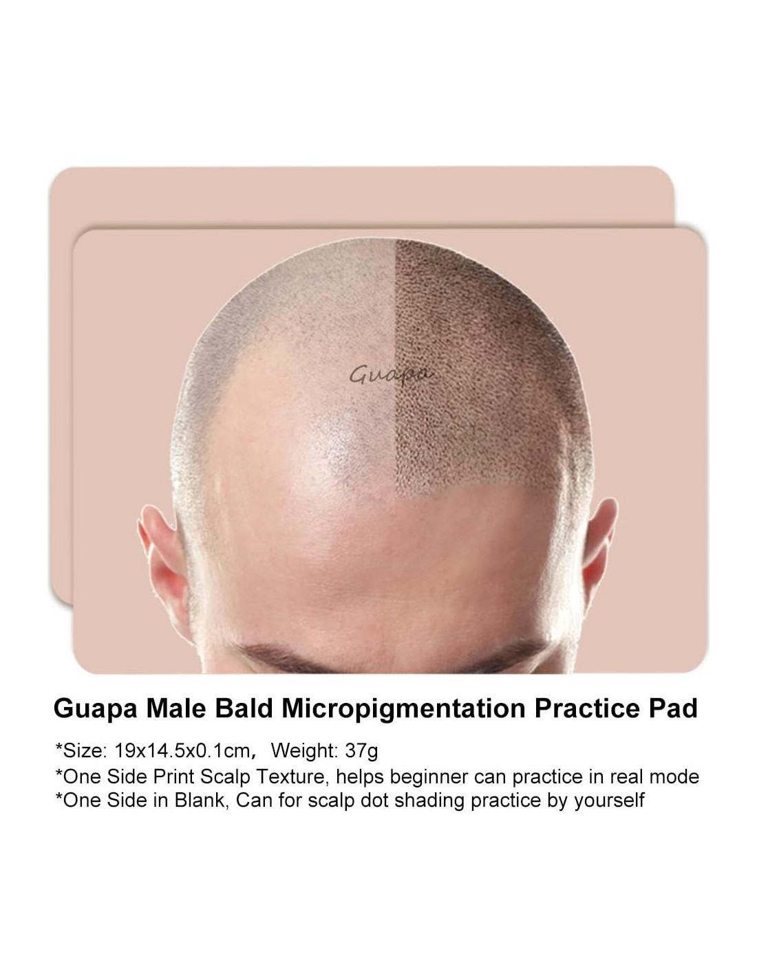 - Pañuelo de Entrenamiento de Micropigmentación Calvo Diseño de Doble Cara: Un lado de la piel de práctica está impreso con una imagen de cuero cabelludo que muestra la simulación de cabello fino, permitiendo a los artistas observar y practicar técnicas específicas. El otro lado está en blanco, ofreciendo libertad creativa para experimentar con estilos de SMP.