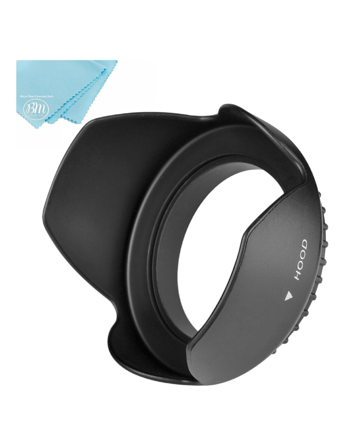 - Capucha de lente en forma de tulipán de 55mm para Nikon D3400, D5600 con 18-55MM AF-P DX, DL24-500 f/2.8-5.6 cámara digital + paño de limpieza de microfibra