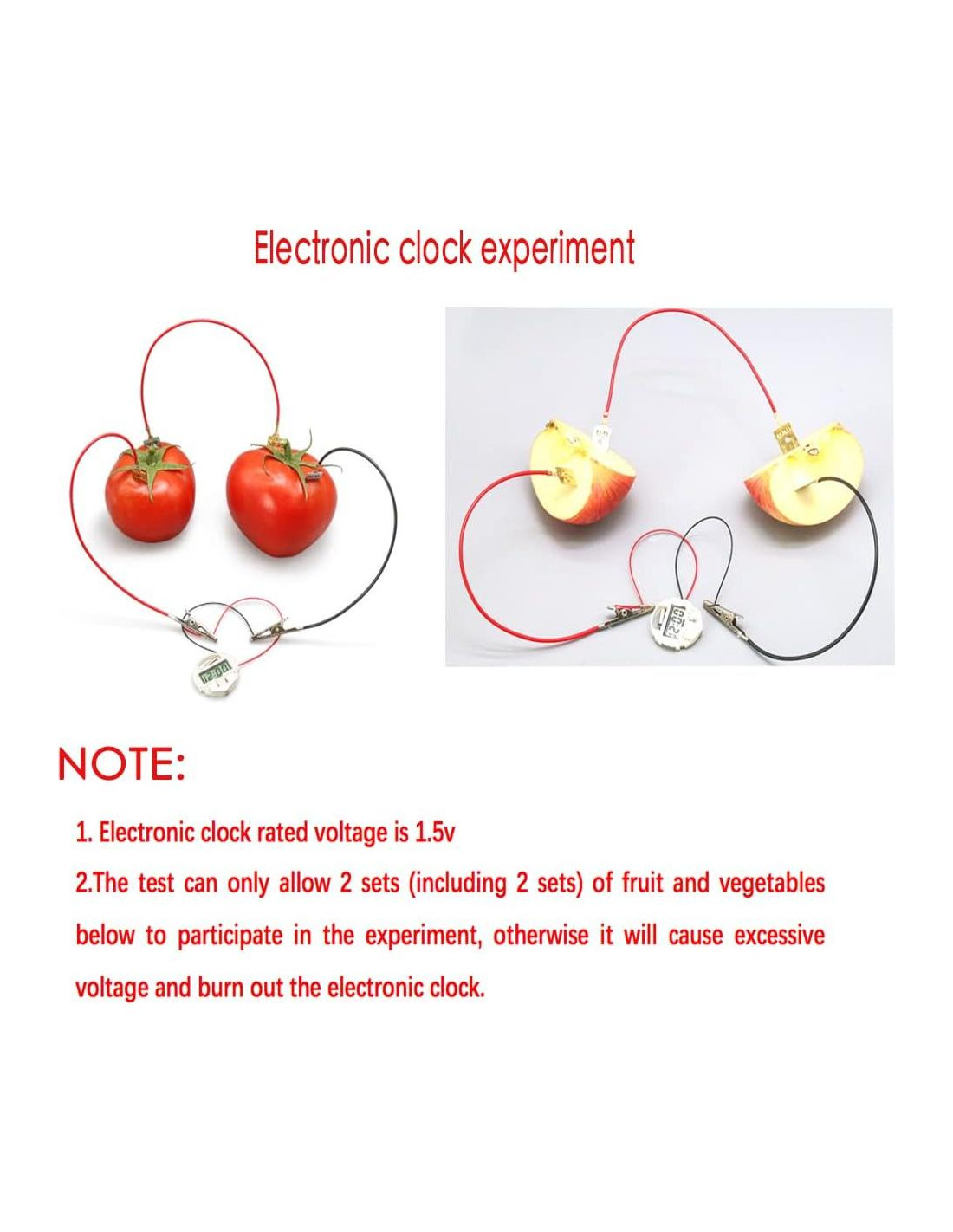 - OPERACIÓN FÁCIL: Solo necesitas preparar frutas, verduras o bebidas para ensamblar una batería que funcione con LED o relojes electrónicos, como: manzanas, naranjas, papas, limones, tomates, cola, peras, piñas o soluciones salinas, etc.