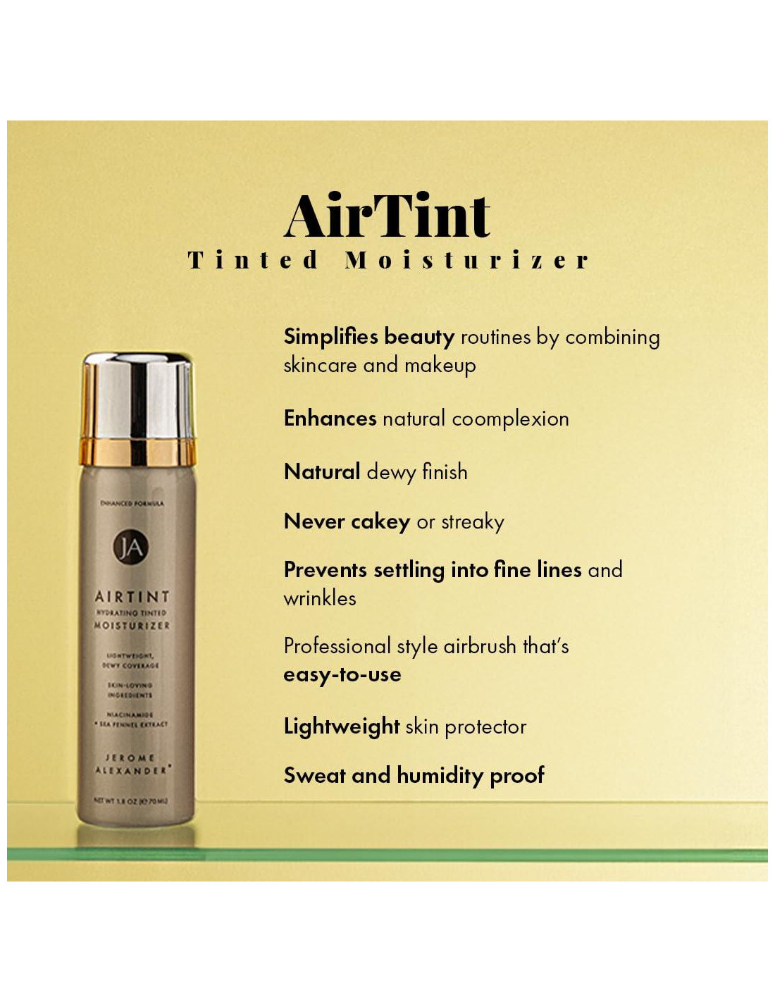 - Belleza Sin Esfuerzo: Logra un look "sin maquillaje, maquillaje" sin esfuerzo con nuestro Spray Hidratante Tinte AirTint. Este spray facial de tinte se asienta perfectamente sobre tu piel. Ya sea que te estés preparando para una ocasión especial o simplemente quieras añadir un toque de elegancia a tu look diario, te encantará la cobertura ligera y fresca de esta fórmula multifuncional!