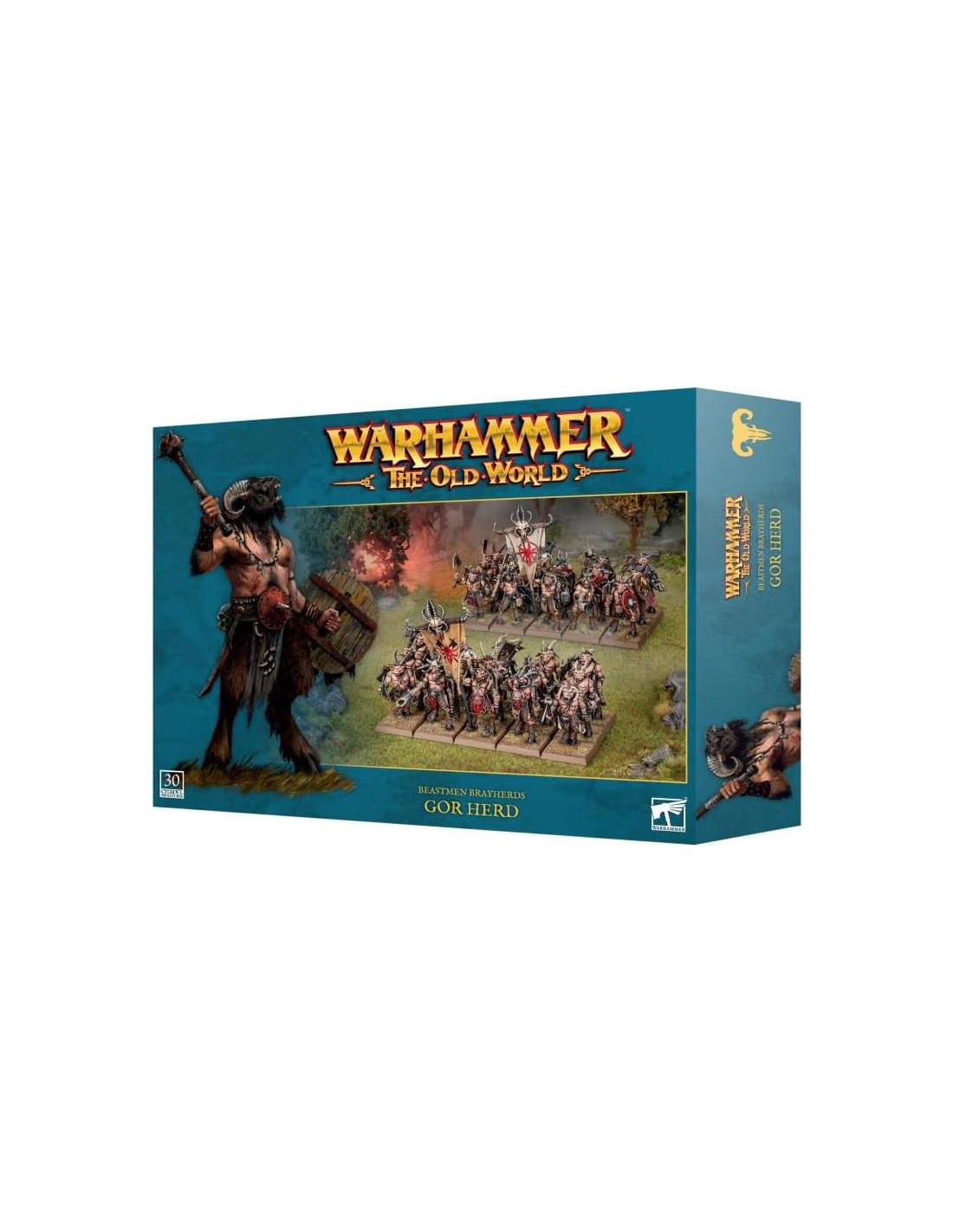 Warhammer El Viejo Mundo Bestias Brayherds Rebaño de Gor Este kit de plástico multipartes construye 30 Gors, infantería sedienta de sangre para tus ejércitos de Bestias Brayherds en juegos de Warhammer: El Viejo Mundo. Son un núcleo ideal para tu fuerza - tanto firmes en defensa como peligrosos en ataque. Pueden ser ensamblados como una gran unidad, o dos unidades de 15 guerreros, cada una con su propio campeón opcional, portaestandarte y músico. Los cuernos, cabezas, armas de mano y escudos en el kit son intercambiables entre los cuerpos, lo que facilita la personalización de tus unidades. Este kit comprende 222 componentes de plástico, 30x Bases Cuadradas Citadel de 25mm, y 1x hoja de Transferencias de Bestias Brayherds que contiene 204 transferencias de alta calidad para decorar tus miniaturas. Estas miniaturas requieren ensamblaje y se suministran sin pintar.