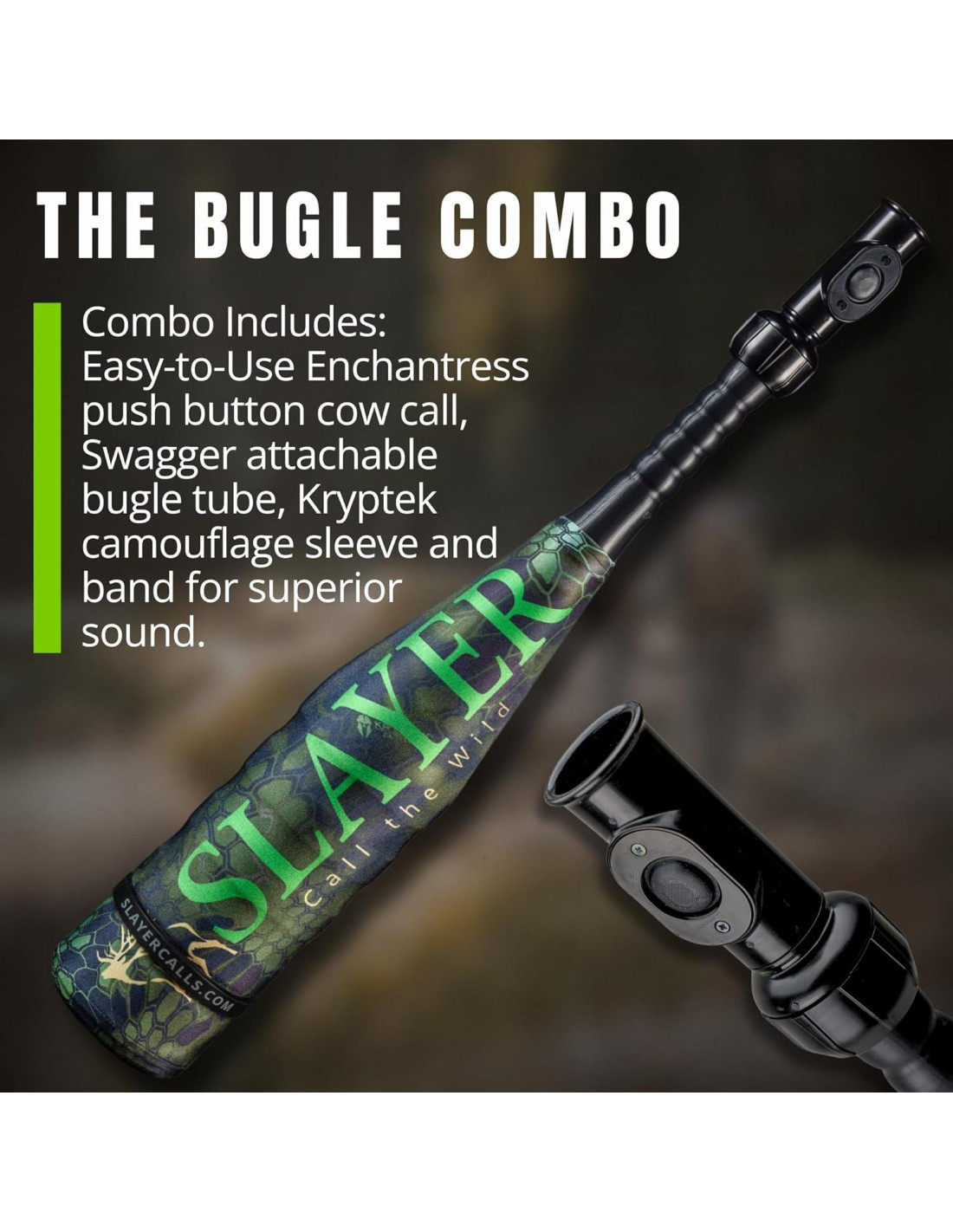 - [Sonido Inigualable] El sistema de llamada de alce más auténtico del mercado. Este sistema produce sonidos de alce tan realistas que los cazadores atrajeron a los grandes toros la temporada pasada, así como a otros cazadores. La llamada de vaca de botón Cazador de Alces se conecta y desconecta fácilmente del tubo de alce Swagger de Slayer (incluido con el combo) para hacer sonidos de vaca y bugles realistas.