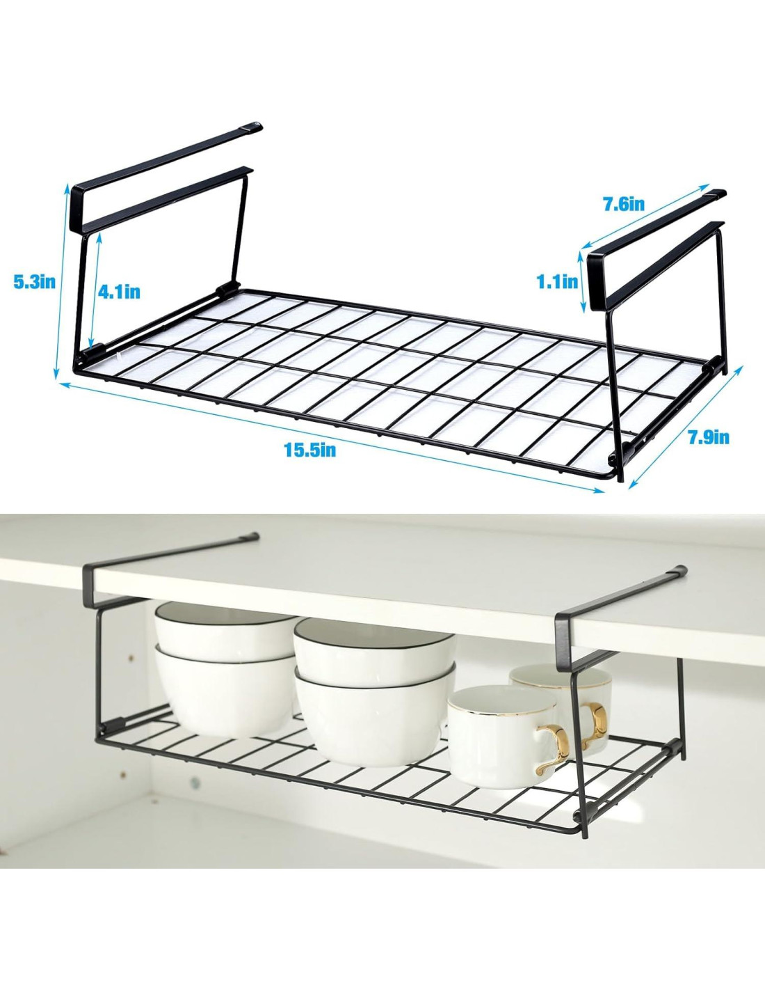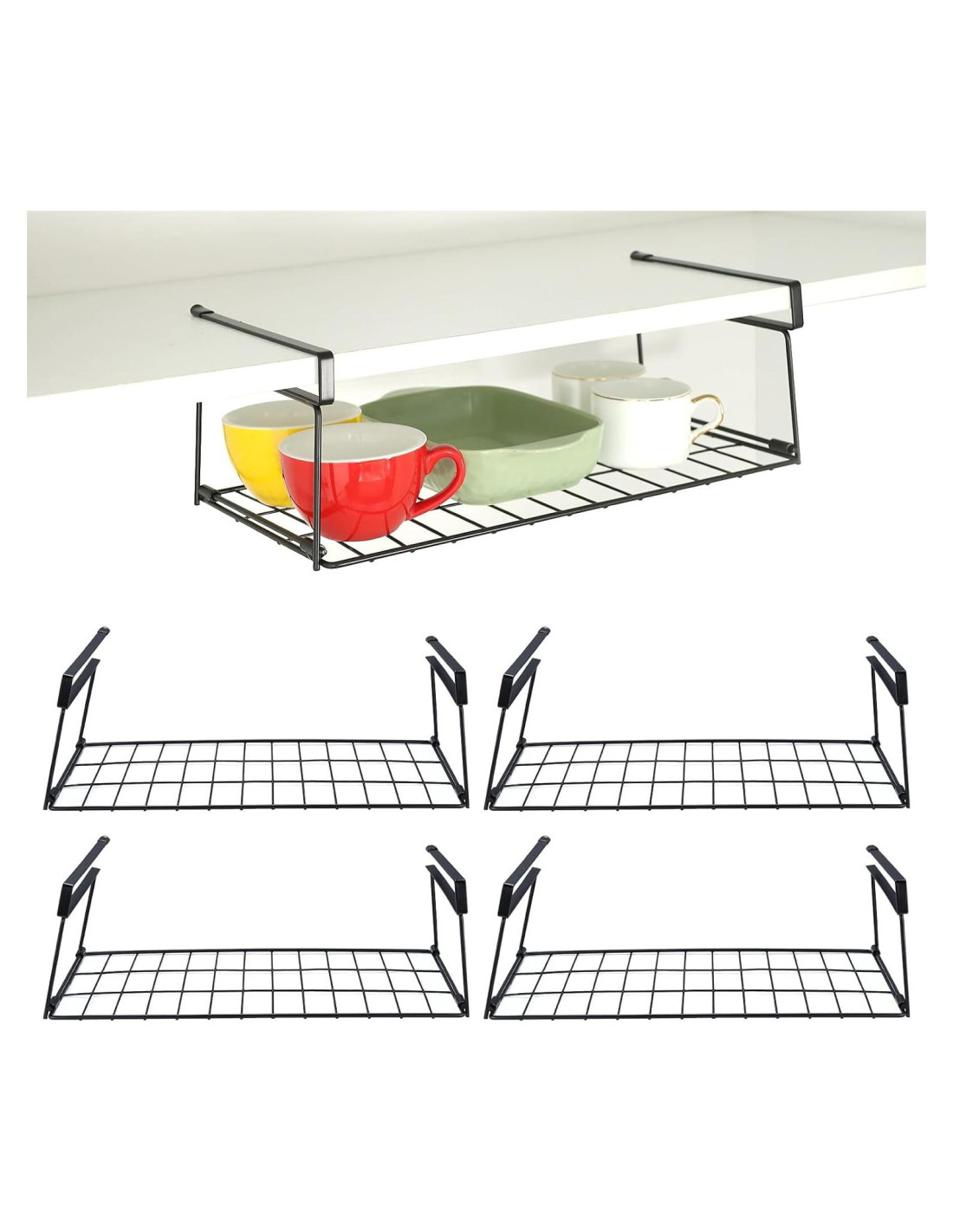 - La canasta de almacenamiento bajo estante se puede usar en refrigeradores, gabinetes, escritorios, mostradores, mesas y armarios para ahorrar más espacio