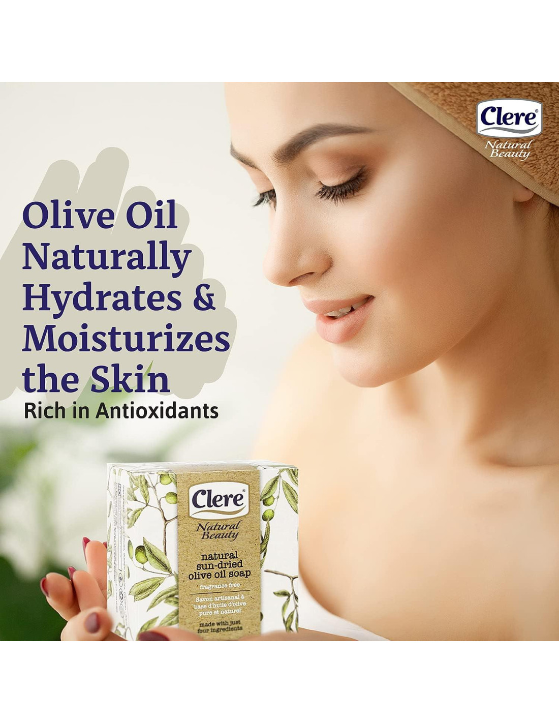 - INGREDIENTES 100% ORGÁNICOS - El jabón de aceite de oliva puro y natural CLERE es el jabón más puro del mercado, elaborado solo con cuatro ingredientes finos: agua, aceitunas, sal y glicerina. Sin productos químicos dañinos, solo lo que obtienes es la bondad orgánica y natural que la madre naturaleza puede ofrecer, dándote un aspecto radiante e hidratante para tu piel