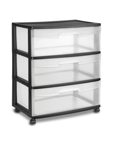 Transforma cualquier espacio con este versátil carro de almacenamiento de 3 cajones que presenta cajones transparentes extraíbles y un elegante marco negro. Perfecto para dormitorios, baños, salas de manualidades o espacios de residencia, este carro mide 55.4 centímetros de ancho, 38.7 centímetros de profundidad y 61 centímetros de alto. Los cajones transparentes facilitan la localización de artículos mientras los mantienen ordenadamente contenidos, y los mangos integrados aseguran un acceso suave. Cada cajón incluye una función de parada para evitar la extracción accidental. Con generosas dimensiones interiores de cajón de 48.6 x 33.7 x 17.8 centímetros, hay mucho espacio para ropa, accesorios, suministros de manualidades o artículos esenciales de baño. Incluye las ruedas proporcionadas para crear una solución de almacenamiento móvil con una altura total de 65.1 centímetros. Ya sea utilizado como un tocador independiente, mesita de noche o organizador de armario, este carro de almacenamiento ayuda a mantener espacios de vida libres de desorden mientras mantiene tus artículos fácilmente accesibles y organizados.