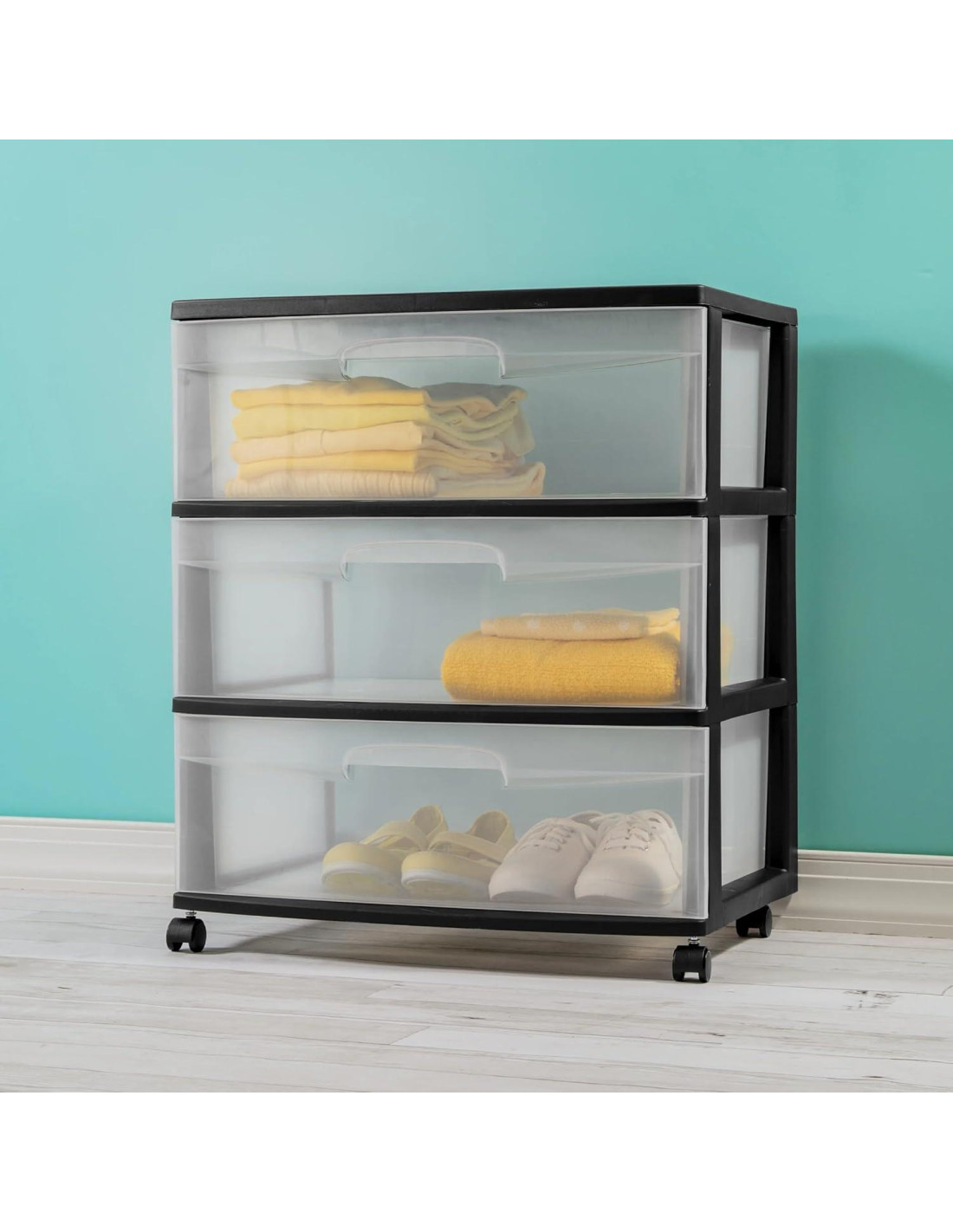 - DIMENSIONES: Mide 55.4 cm de ancho x 38.7 cm de profundidad x 61 cm de alto con cajones transparentes extraíbles; las dimensiones interiores del cajón son 48.6 x 33.7 x 17.8 cm