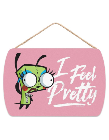 - Divertida Señal Vintage: ¡Deja que la frase pegajosa de Gir "Me Siento Bonita" ilumine tu espacio! Esta peculiar obra de arte de madera colgante es perfecta para aquellos que aman la imprevisibilidad y el humor de Invader Zim. Ya sea colgando en tu dormitorio u oficina, ¡garantiza hacerte sonreír cada vez que la veas! ¡El toque perfecto de nostalgia para los fanáticos que aprecian el encantador humor de Gir!