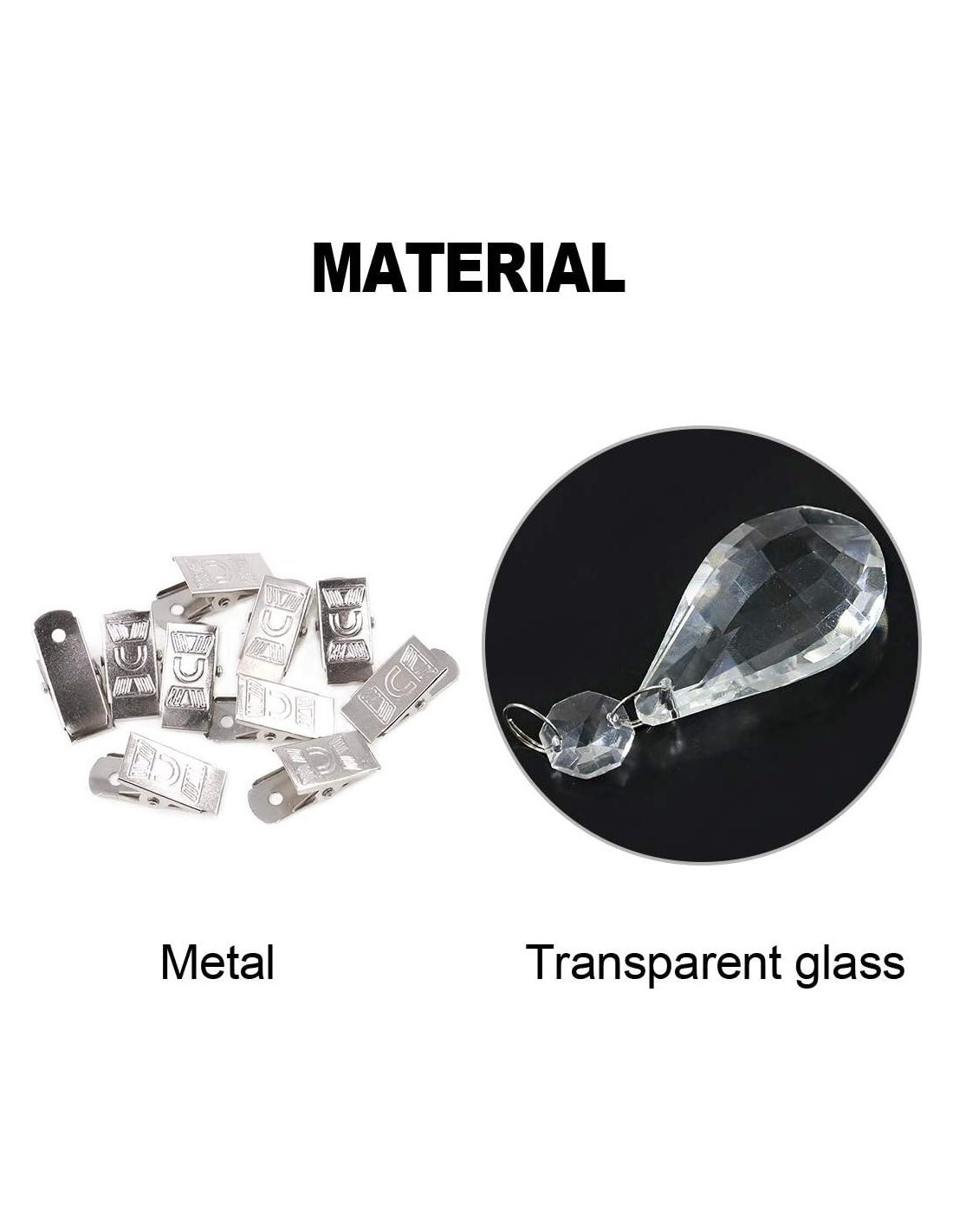 - [Acerca de las Pesas para Manteles:] Todas las pesas para manteles están hechas de cristal de vidrio, son brillantes y transparentes, cada una con 2 anillos de conexión y una perla de cristal multifacética; los clips de metal están hechos de acero inoxidable, lo suficientemente fuertes y duraderos para que puedas colgarlos. cada peso es de aproximadamente 22g/0.8oz.