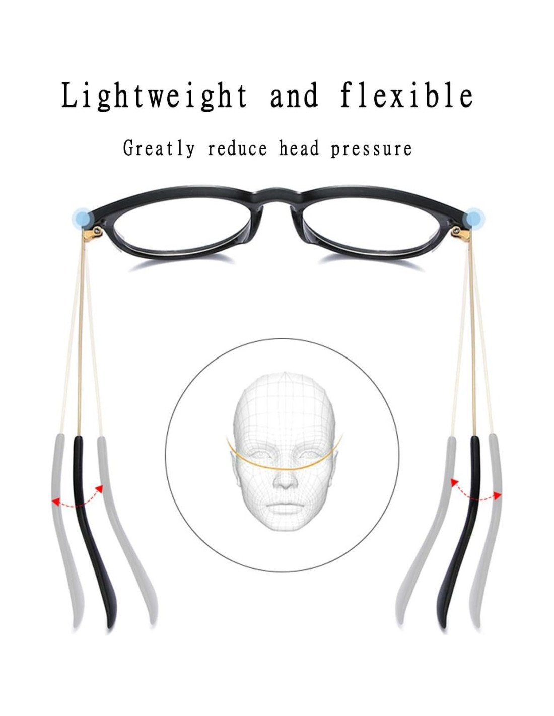 - Marco de plástico sólido, templos completamente de metal, lentes transparentes, muy duraderos, no se rompen fácilmente