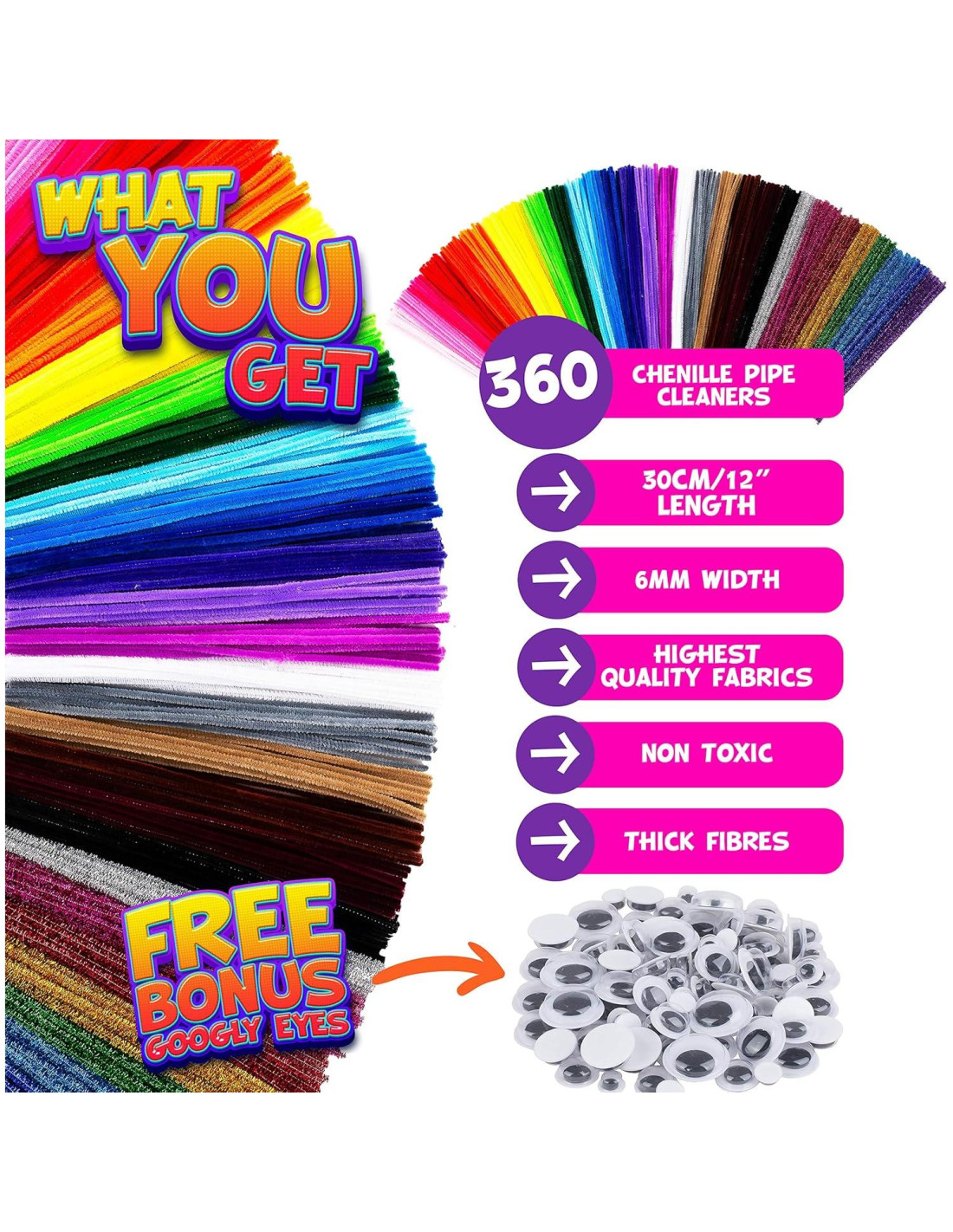 - Set de Manualidades de 460 Piezas de Blue Squid: Inspira diversión creativa con el Set de Manualidades de 460 Piezas de Blue Squid, que incluye 360 Limpiapipas Chenille y 100 Ojos Móviles! Los limpiapipas presentan 35 colores variados (25 clásicos + 10 brillantes), cada uno mide 12" (30cm) y vienen en colores vibrantes como rojo, verde, dorado, blanco, amarillo y más! Los ojos móviles incluidos añaden un toque divertido a tus creaciones, ¡dándoles vida! Perfecto para crear animales, pulseras y más, este set despierta la creatividad y la imaginación.