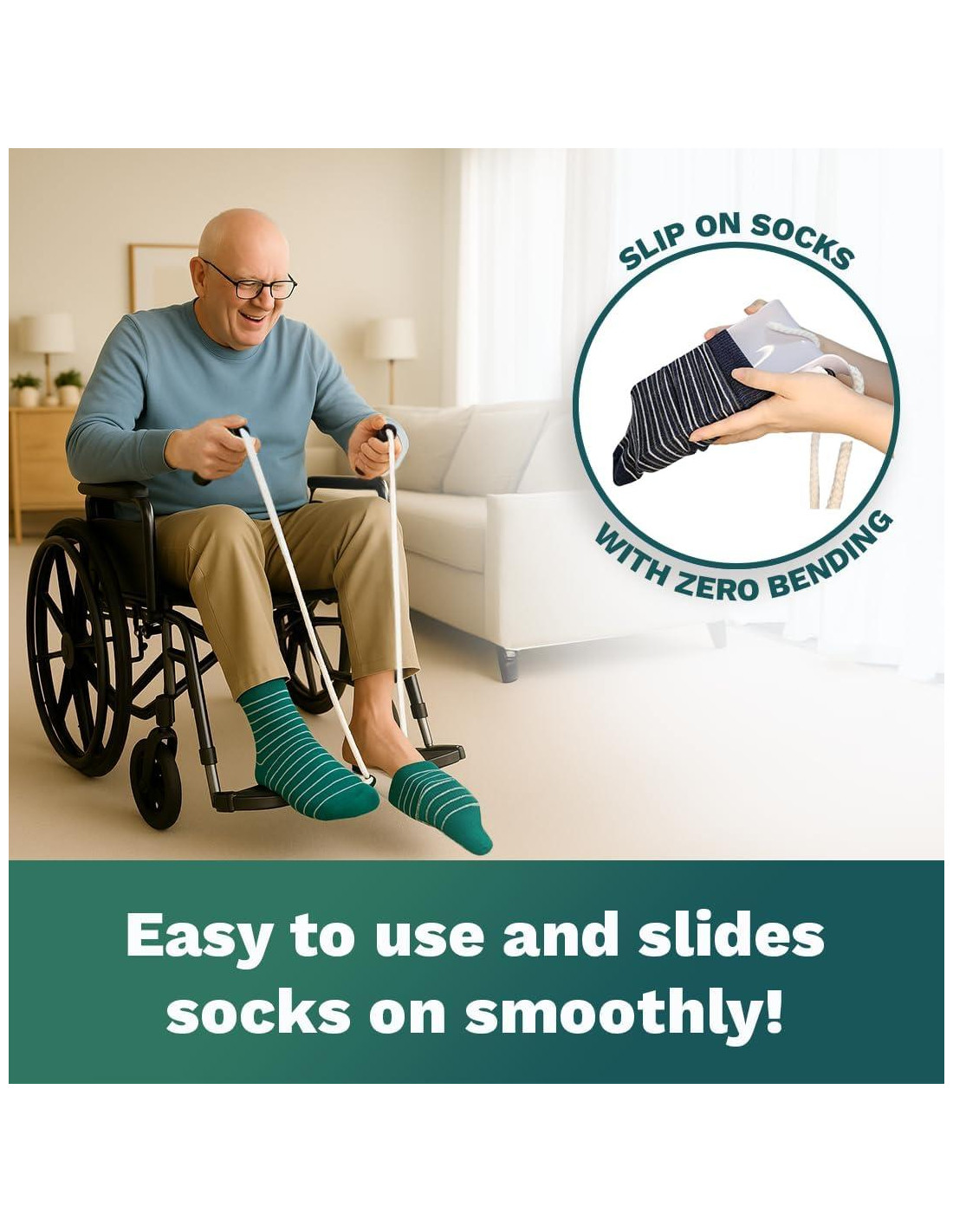 - Diseño Ergonómico y Amigable para el Usuario: Construido con la comodidad en mente, las ayudas para la discapacidad para la vida diaria incluyen cordones amplios y flexibles con mangos acolchados que proporcionan un agarre seguro y suave. El diseño ligero permite a los usuarios ponerse los calcetines sin doblarse, convirtiéndolo en una excelente ayuda para la vida diaria para personas mayores, lesionados y mujeres embarazadas.