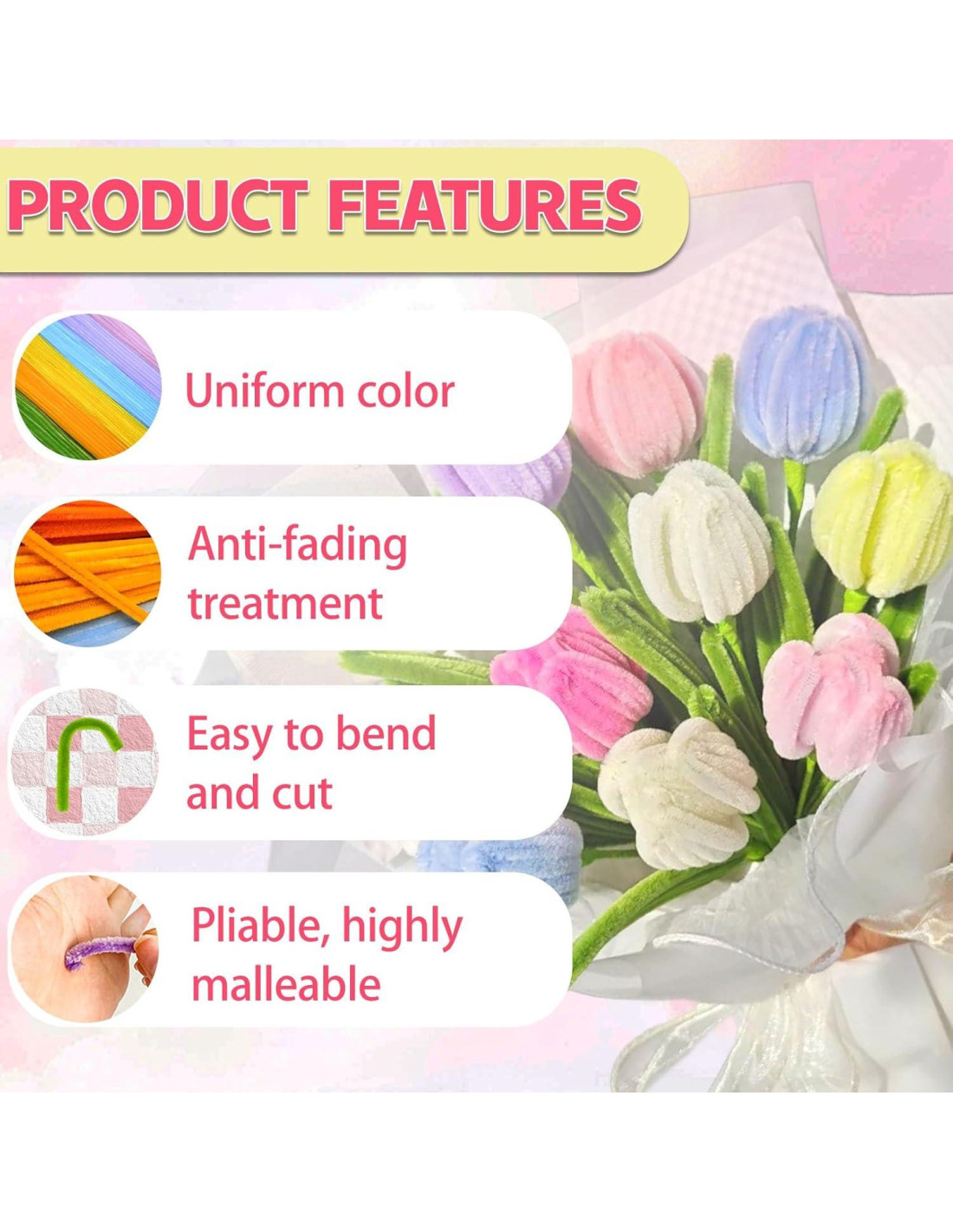 - Manualidades de limpiapipas al por mayor para principiantes: Kit de flores de limpiapipas en forma de tulipán, solo se necesita doblar y cortar para hacer tus flores de limpiapipas favoritas. Muy fácil para principiantes, adecuado para proyectos en el aula y diversión familiar.