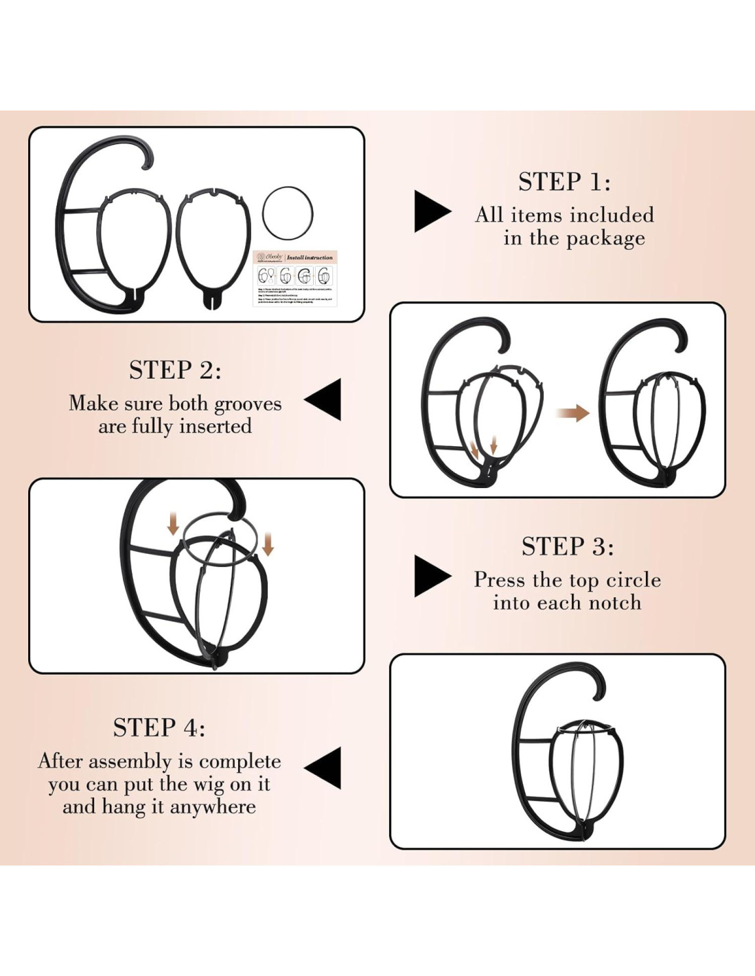 - Fácil de Instalar y Desmontar: Las partes del soporte de peluca son simples y fáciles de ensamblar. Alinea las ranuras cruzadas de las dos piezas del soporte y presiónalas firmemente. Alinea y presiona los accesorios redondos con las ranuras sobre el soporte. Conveniente para colgar en cualquier lugar, ahorrando más espacio en la encimera.