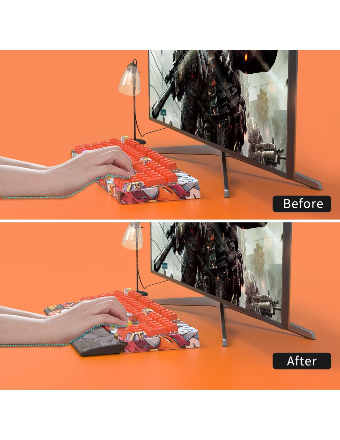 - Base antideslizante: la parte inferior mate de la espuma para teclado de juego añade 6 bases de goma antideslizantes, que pueden mantenerlo efectivamente en el escritorio durante juegos intensos o escritura, previniendo movimientos innecesarios y deslizamientos accidentales.