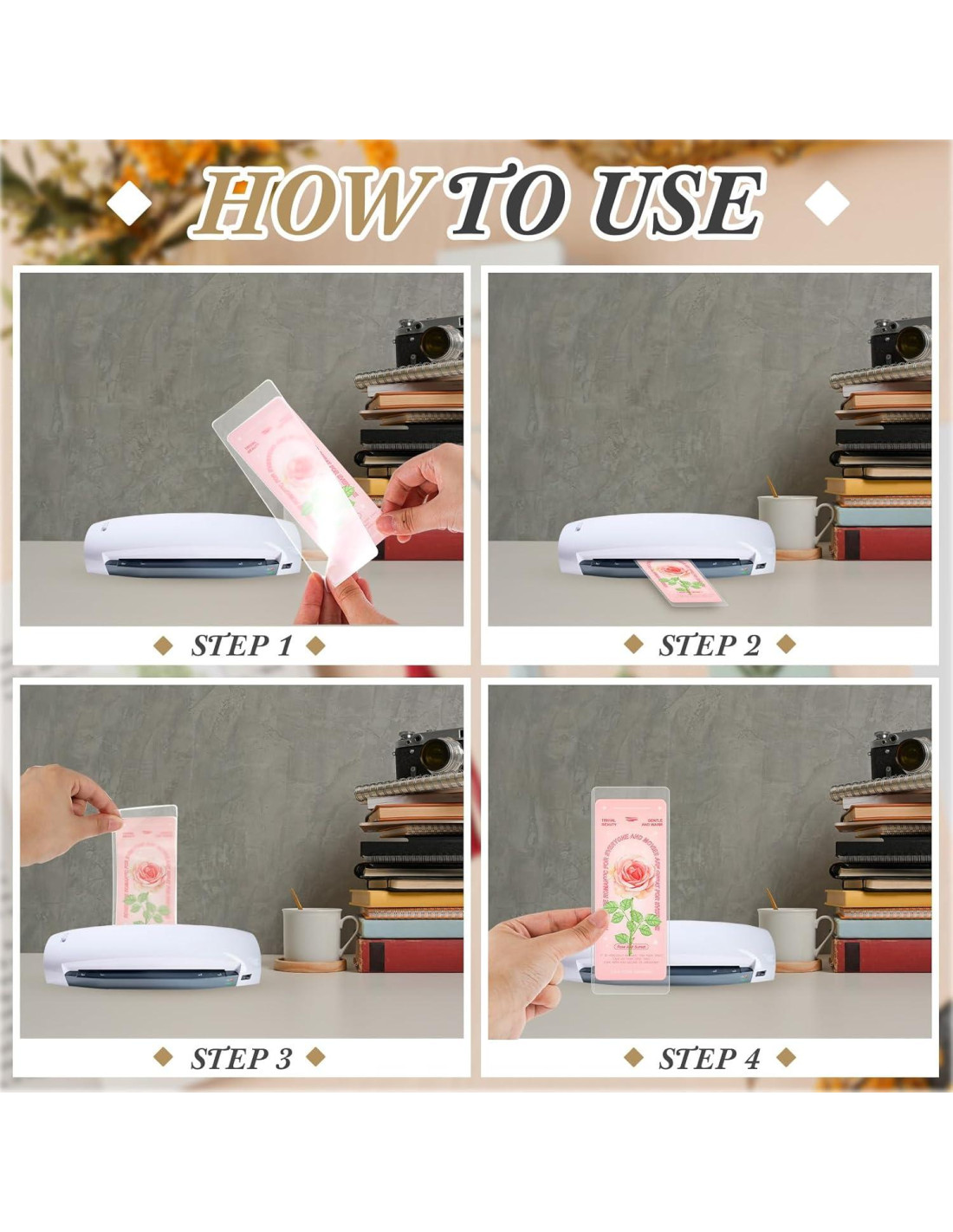 - Creando tus propios Marcadores: da un toque personal a tu hábito de lectura con la funda de laminado para marcadores; Este kit incluye 150 hojas de fundas de laminado de 5 mil que miden 6 x 16 cm, 150 borlas para marcadores y una perforadora blanca, ayudándote a crear tu propio marcador; Simplemente diseña tu marcador, imprímelo y usa la funda con una laminadora de bolsa caliente para proteger tu creación