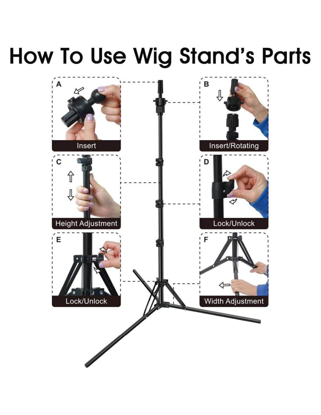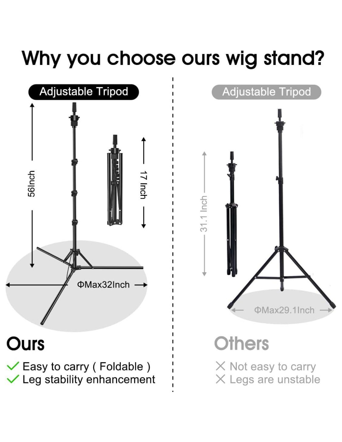 - Soporte de Peluca Profesional: El soporte para cabeza de maniquí es perfecto para la mayoría de las cabezas de maniquí, cabezas de peluca de lienzo, etc. Este soporte de trípode para peluca es muy fácil de ensamblar y trabajar, práctico y sólido para almacenar, recortar, rizar, teñir o alisar pelucas, extensiones de cabello.