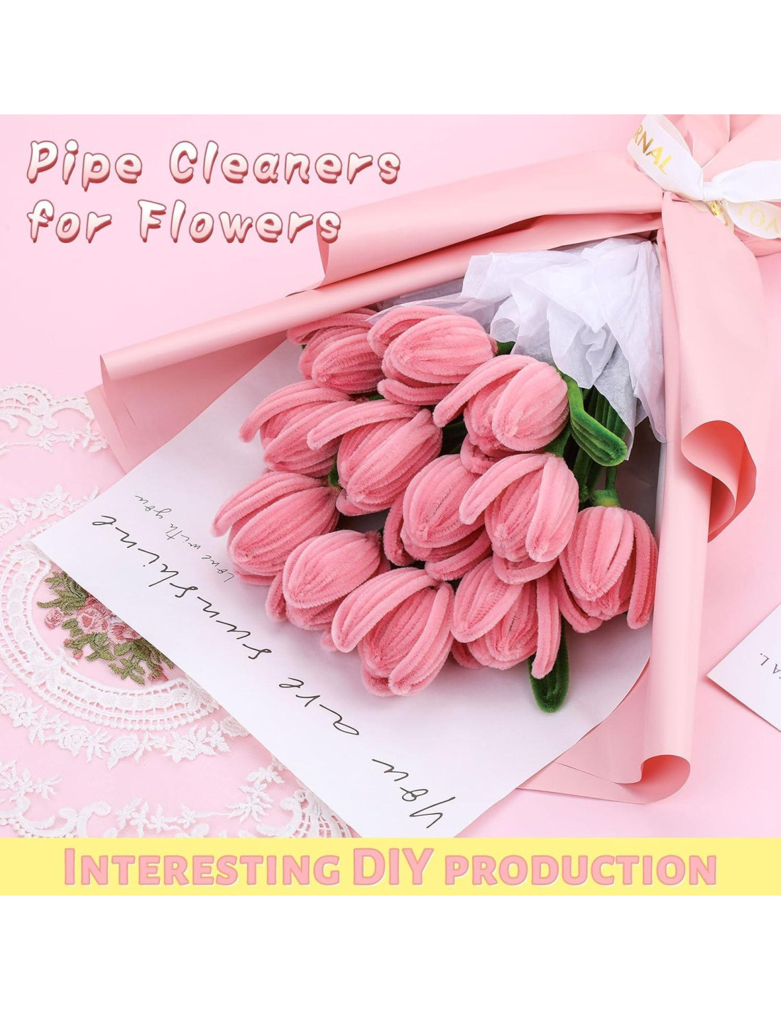 - Juego de manualidades de limpiapipas: 240 limpiapipas rosas, 72 limpiapipas verdes, 21 tallos de flores, 3 cintas florales verdes, 2 cintas blancas, tarjeta de la suerte, instrucciones de guía, algo de papel de regalo púrpura, rosa y blanco. Los limpiapipas están bellamente coloreados y en grandes cantidades, adecuados para hacer ramos. Estos kits de ramo de limpiapipas de bricolaje con papel de regalo y tarjetas de felicitación para regalar a amigos y familiares.