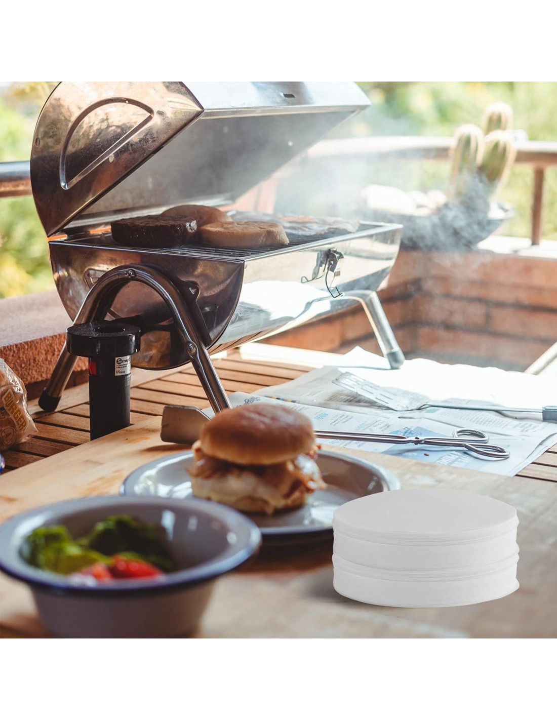 - Material Seguro y Premium - Estos papeles de pergamino redondos están hechos de pulpa de madera original premium, superficie cubierta con aceite de silicona de grado alimenticio antiadherente para proteger la carne de perder su sabor y humedad original para mantenerla fresca.