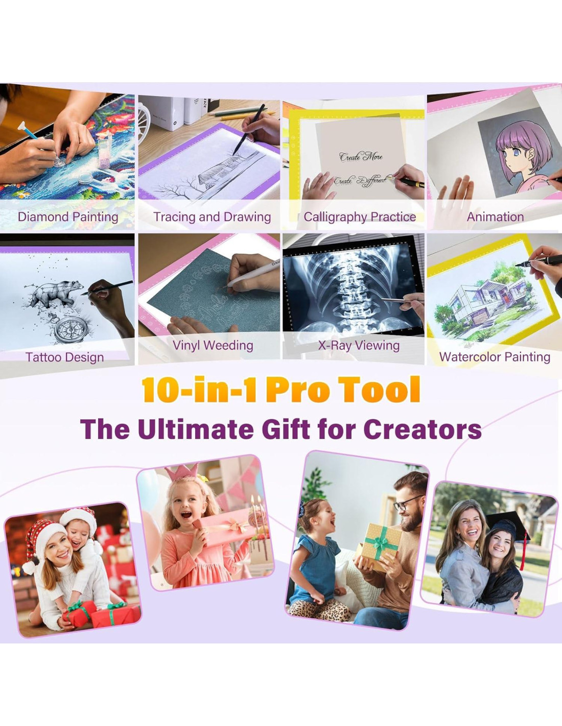 - Ampliamente Usado - Esta almohadilla de luz ultra fina es una herramienta imprescindible para artistas, artesanos y profesionales. Ideal para pintura de diamantes, deshierbe de vinilo, esbozo, animación 2D, costura, caligrafía, vidrio de colores, acolchado, scrapbooking y trabajo de oficina.