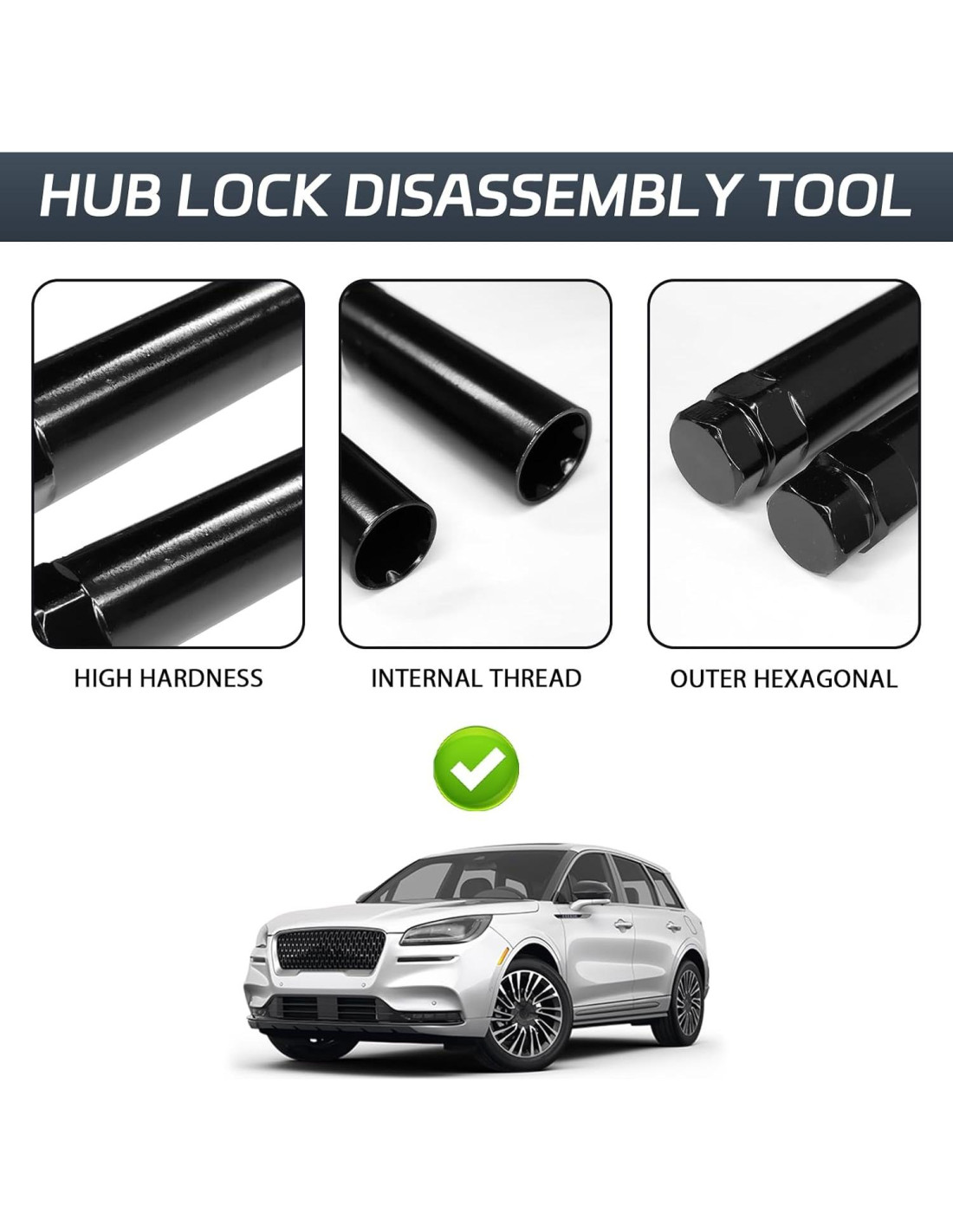 - [Amplia Aplicación] Esta herramienta de remoción de bloqueo de rueda es compatible con tamaños de rosca: M10x1.25, M12x1.25, M12x1.5, 1/2"x20, 7/16"x20, adecuada para el apriete y la remoción de la mayoría de camiones y SUV equipados con sistemas de tuercas de spline hexagonales y tuercas de llanta