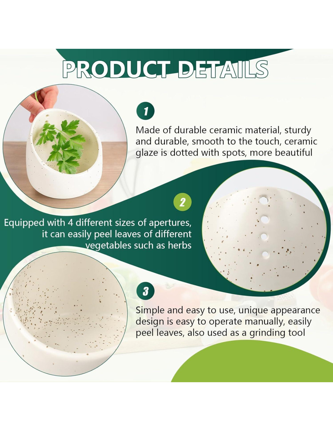 - Material de Cerámica Duradero: Nuestros tazones deshojadores de hierbas de cerámica están hechos de materiales de alta calidad y duraderos que están diseñados para soportar la actividad diaria en la cocina