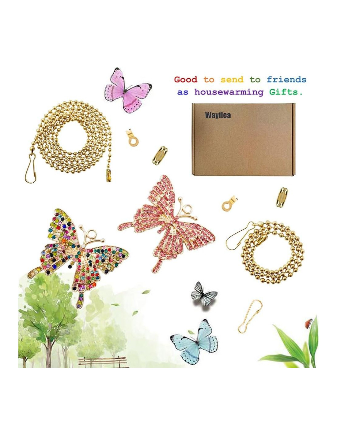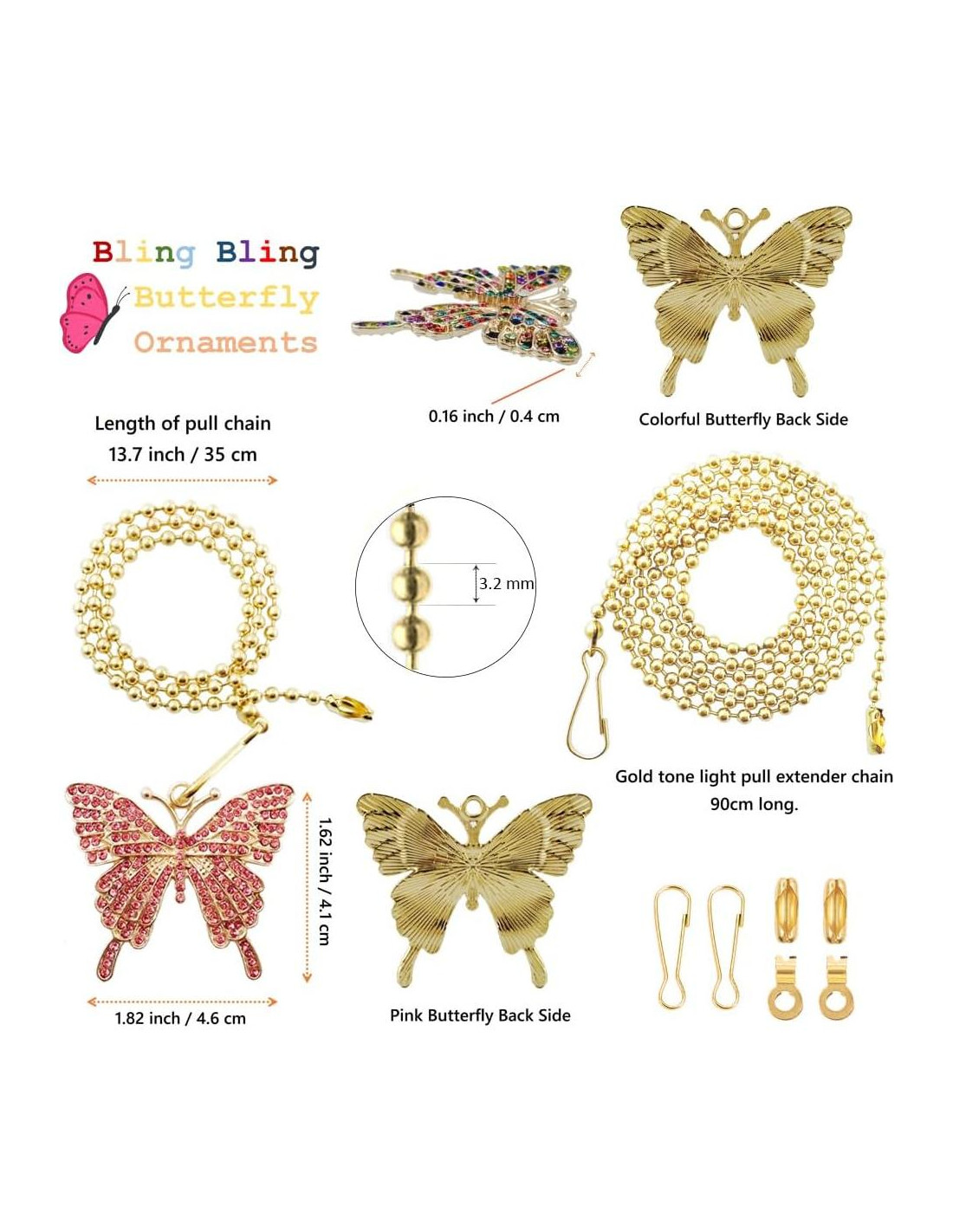 - Incluye 1 Mariposa Rosa y 1 Colorida -- Mide aproximadamente 4.6 x 4.1 x 0.4 cm, Conjunto de cadena de tirón de ventilador y luz de mariposa brillante y bonita.