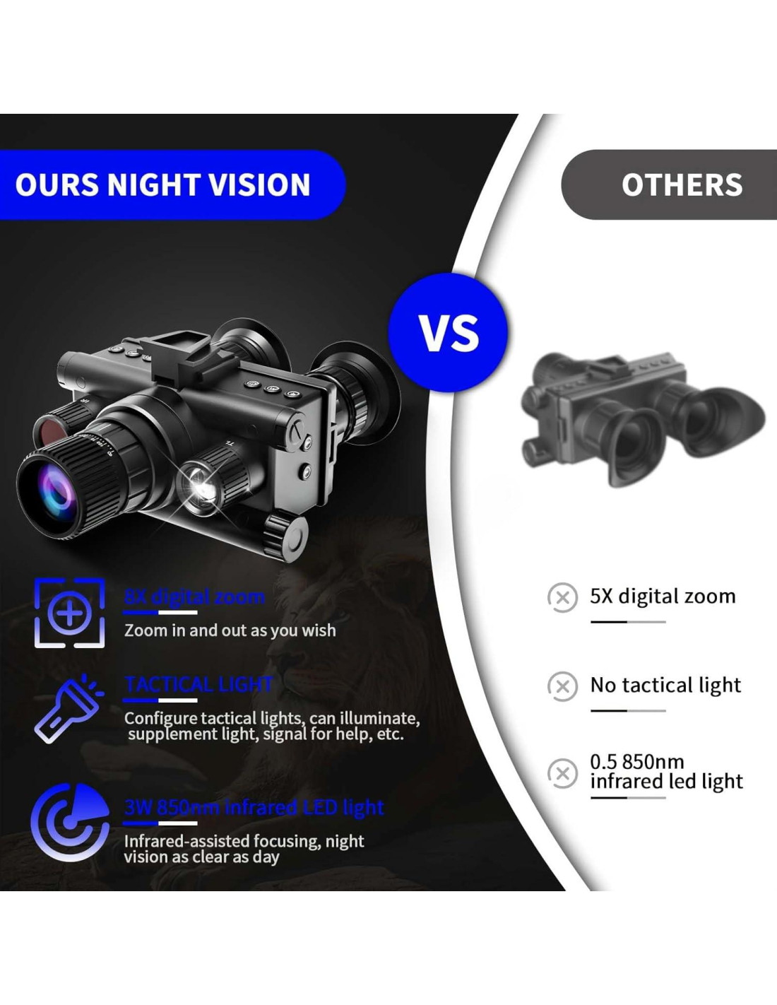 - Zoom y Magnificación Versátiles: Las gafas de visión nocturna cuentan con una magnificación de lente de 5x y un zoom digital de 8x, lo que las hace adecuadas para diversas necesidades de observación.